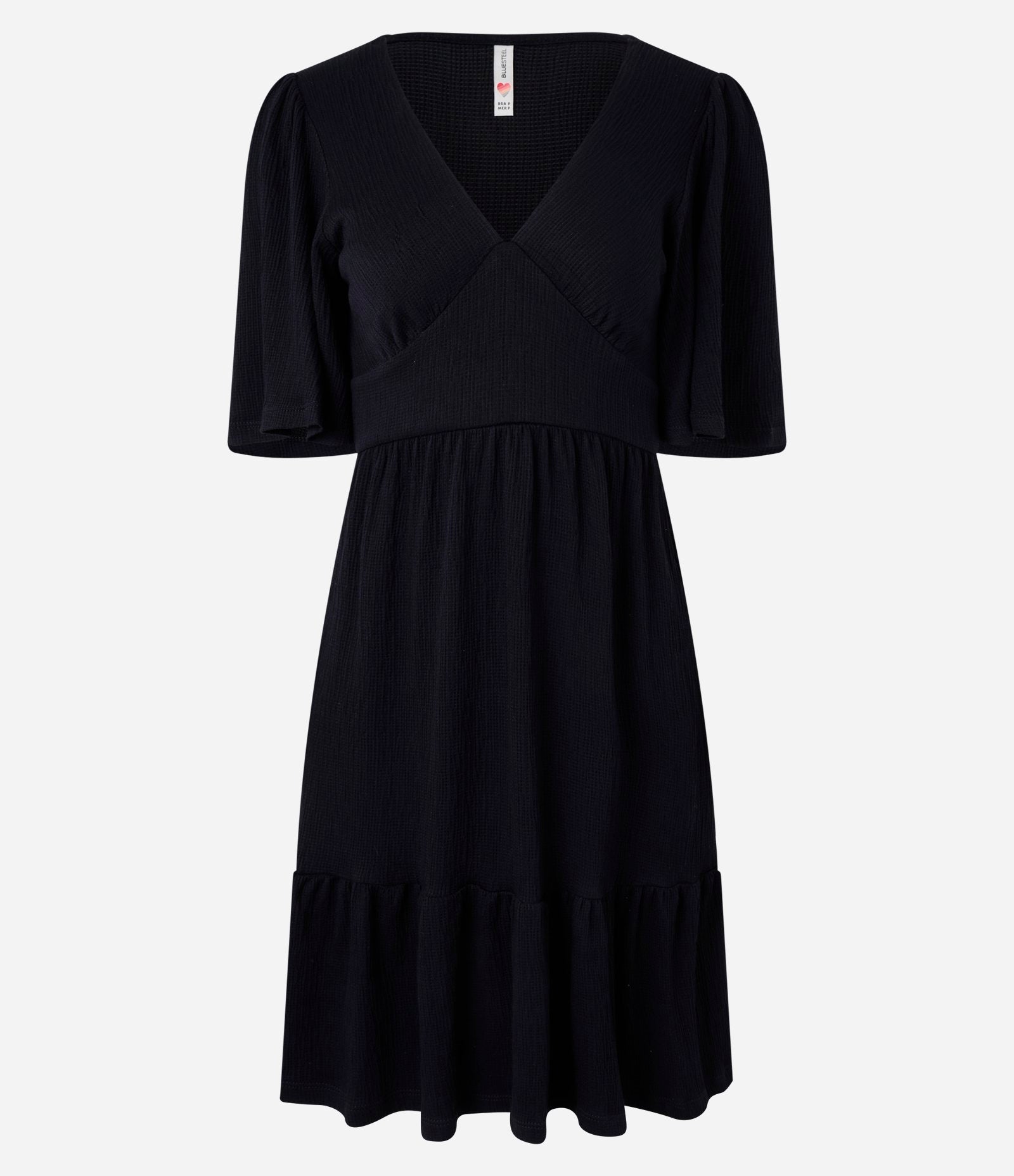 Abito in maglia strutturata con maniche svasate e orlo increspato in nero