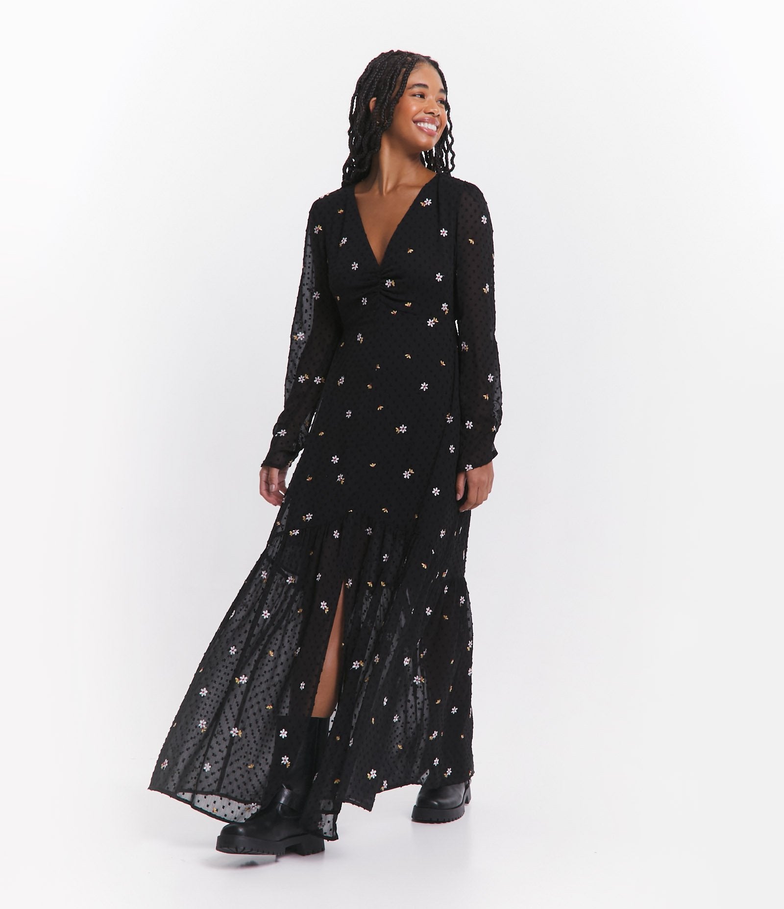 Abito lungo in chiffon con ricamo floreale nero di Renner - Prova il comfort, la qualità e lo stile in ogni dettaglio.
