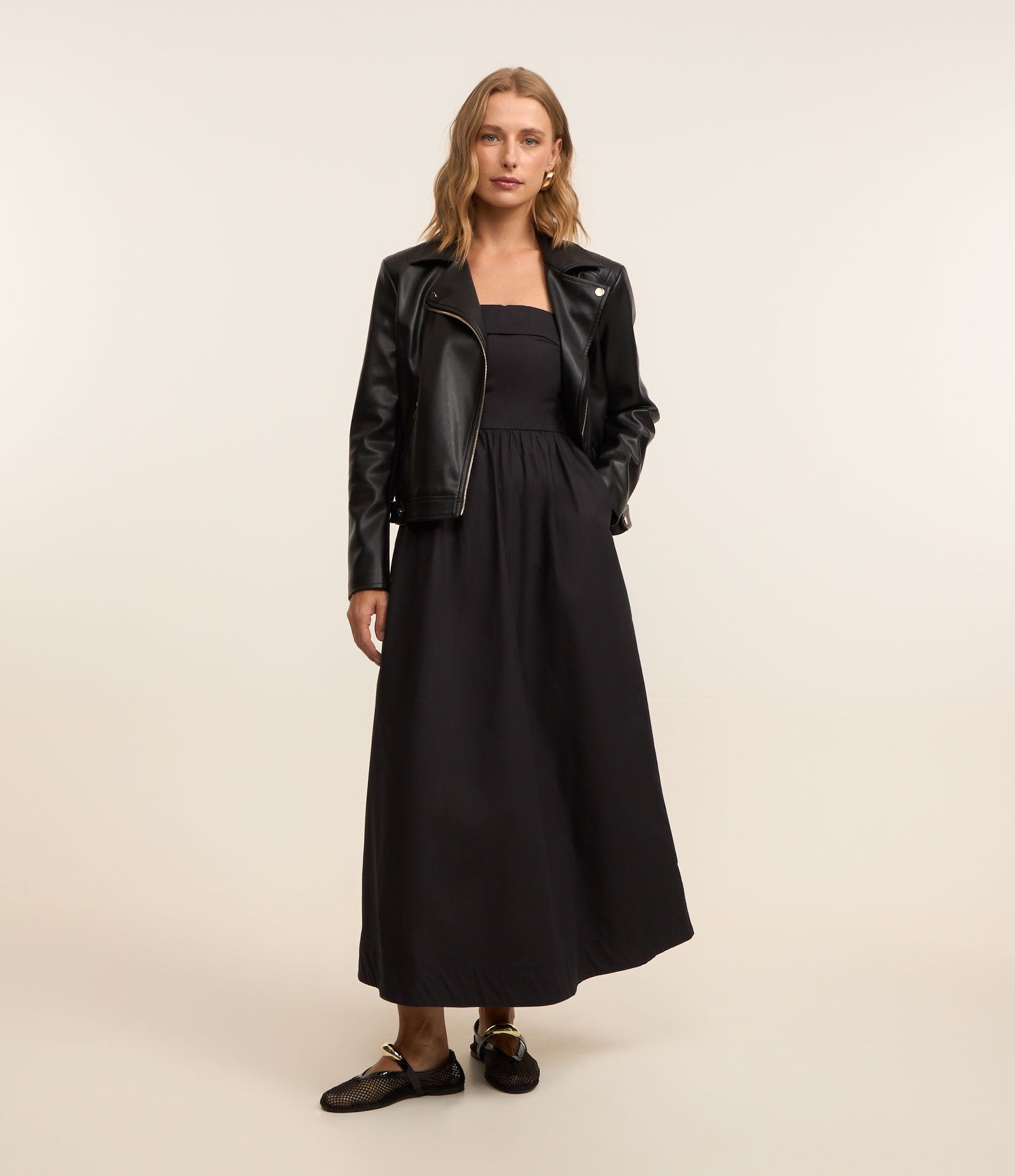 Abito lungo nero senza spalline in tricolore con tasche di Renner - Prova il comfort, la qualità e lo stile ineguagliabili di ogni capo.