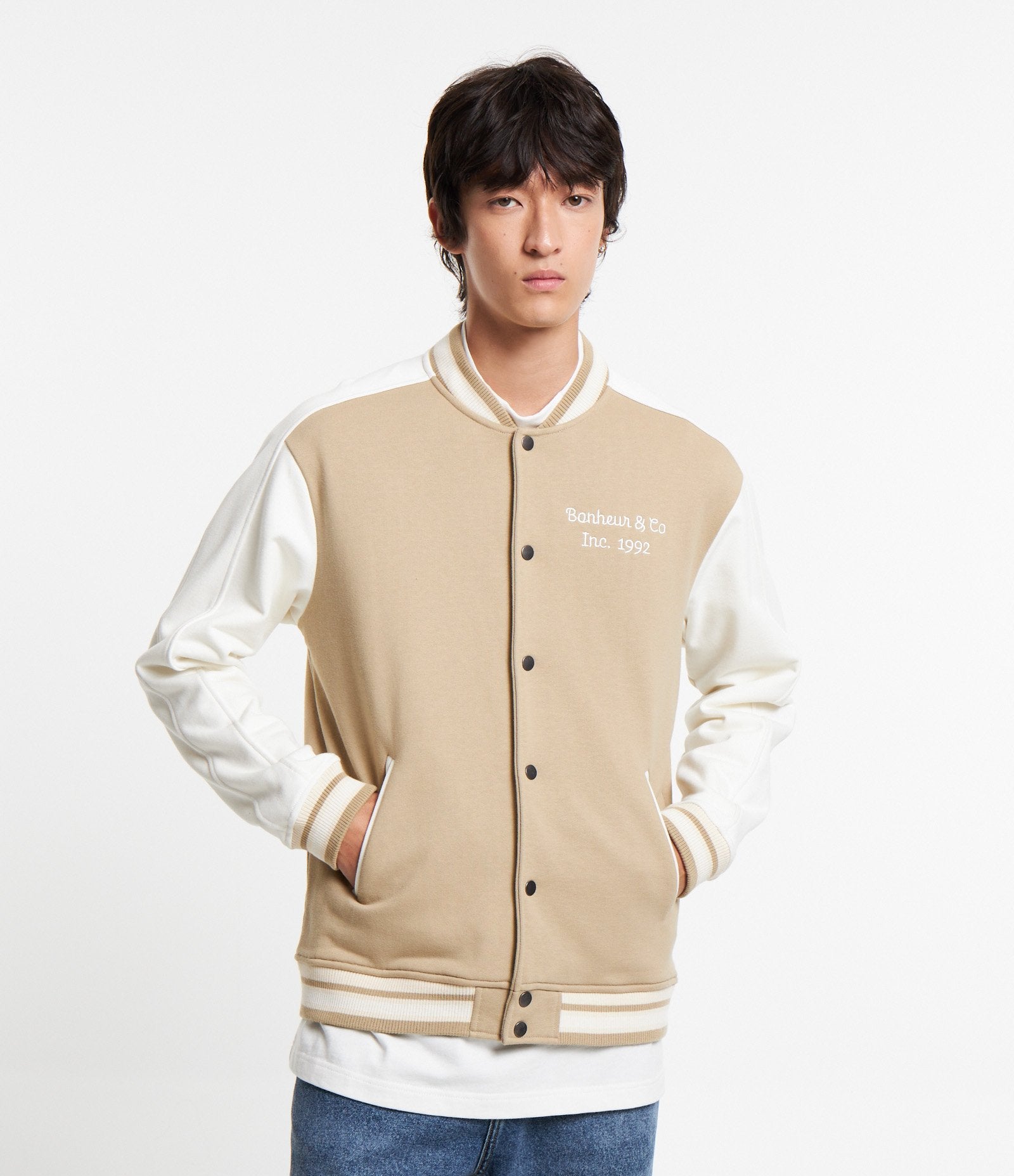 Giacca in felpa beige foderata in pile