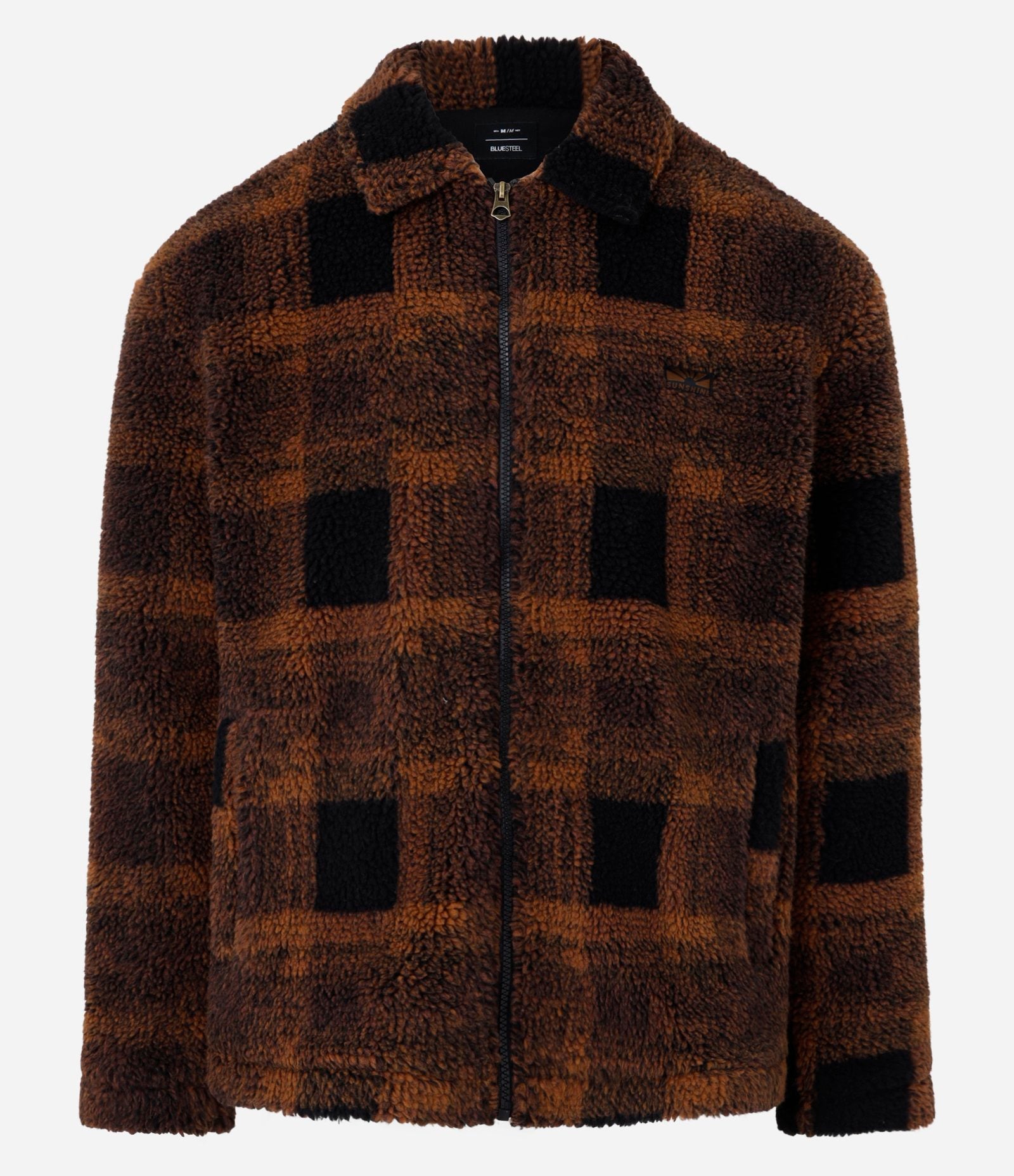Giacca Sherpa a quadri marroni con trama morbida