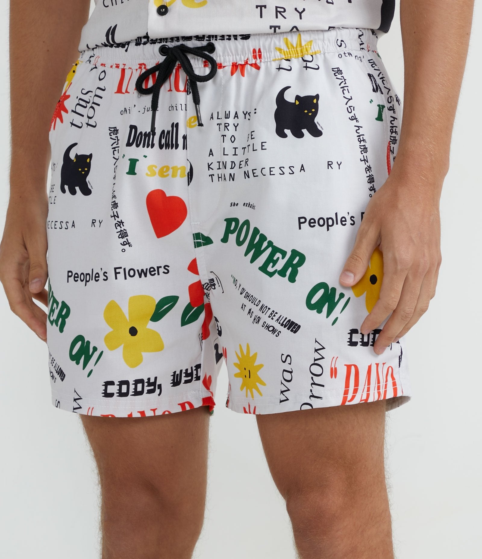 Bermuda Paper Touch con stampa floreale e gatto bianco di Renner - Scopri il comfort, la qualità e lo stile di ogni capo.