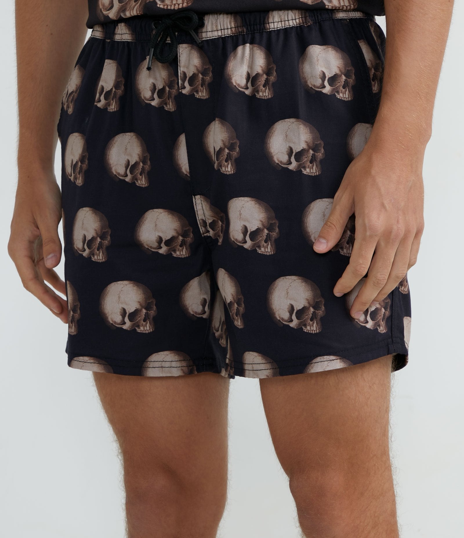 Bermuda Paper Touch con stampa teschio nero di Renner - Prova la miscela perfetta di comfort, qualità e stile con ogni pezzo.