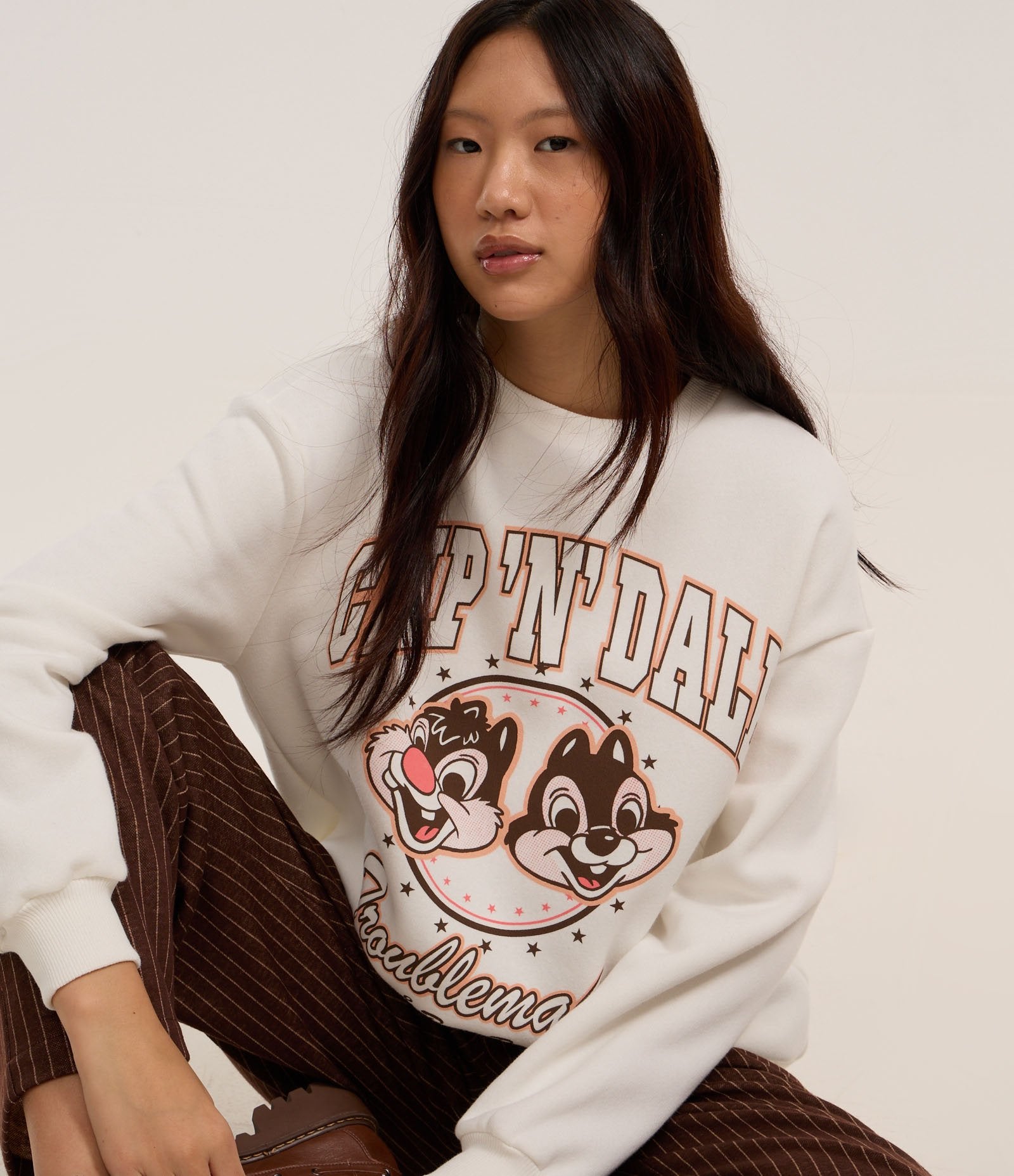 Felpa con cappuccio in cotone bianco con fodera in pile e stampa di Chip 'n Dale