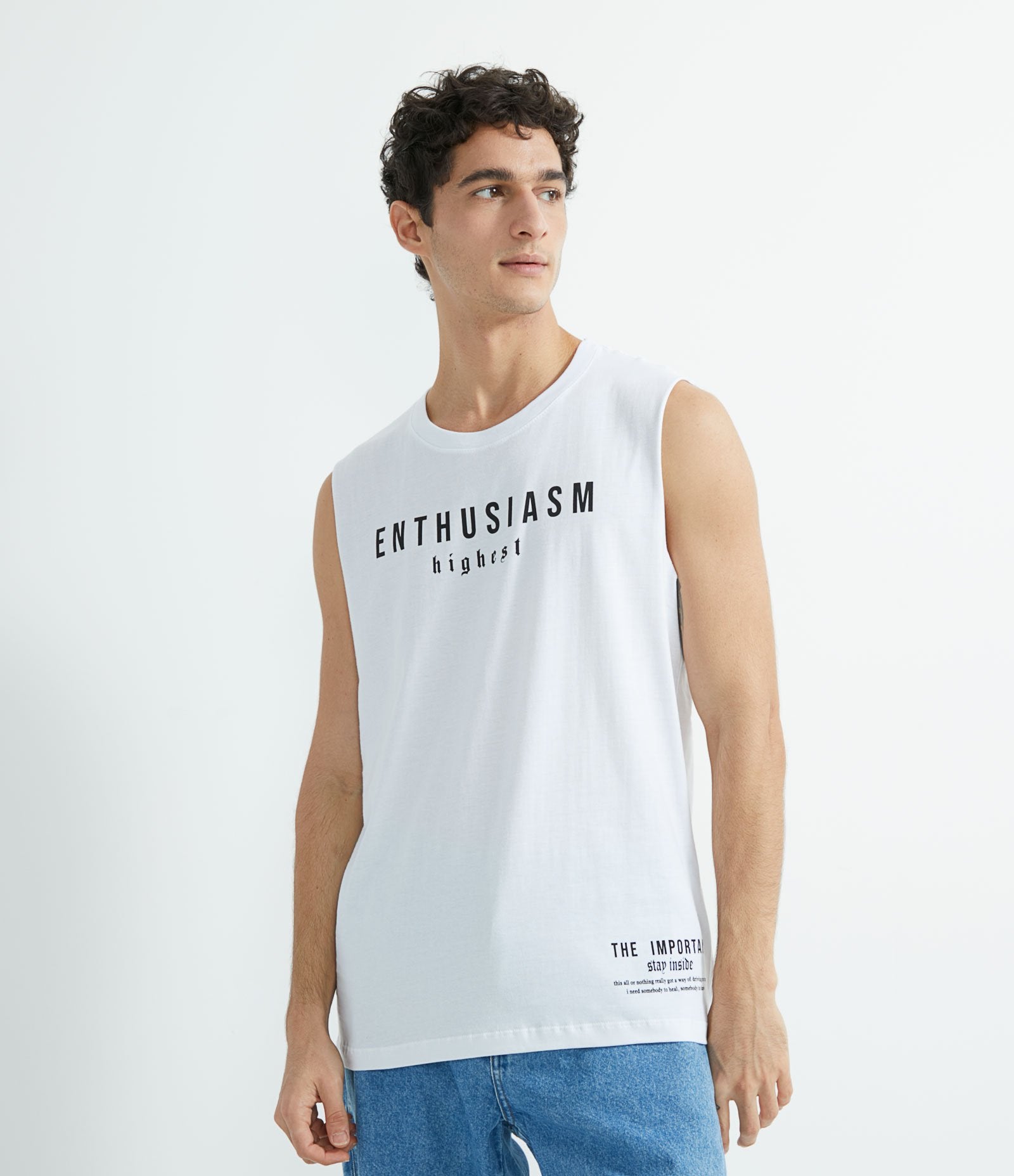 Top senza maniche in tessuto a maglia con stampa a lettere bianche