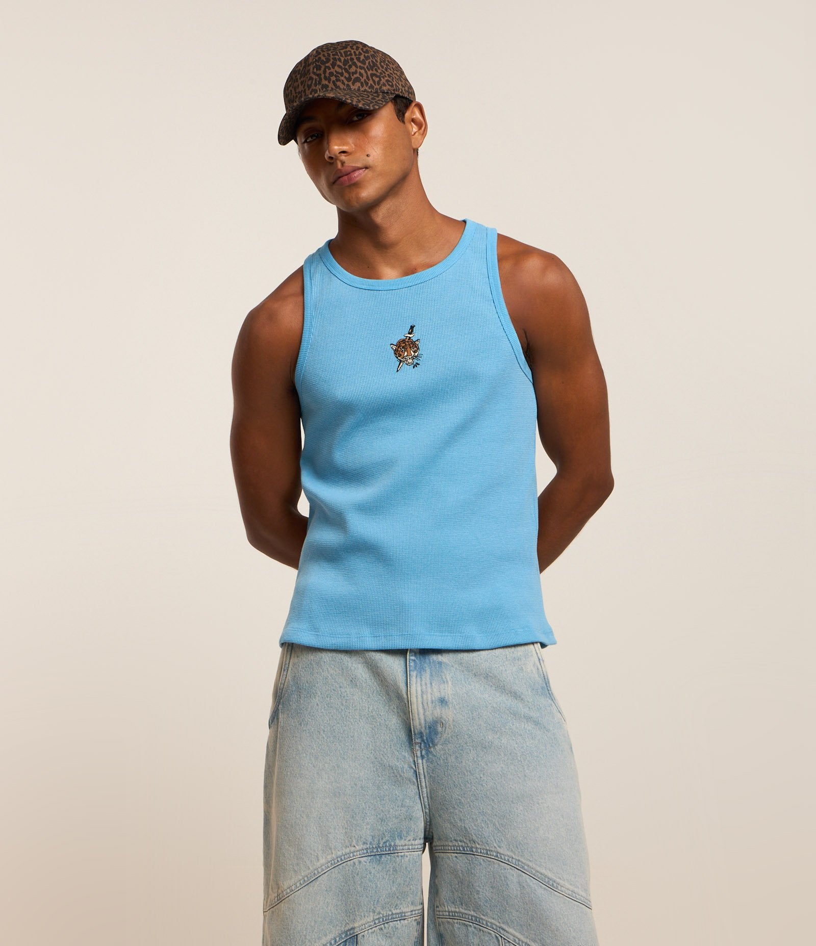 Canotta a costine con ricamo di tigre e disegno di coltello blu
