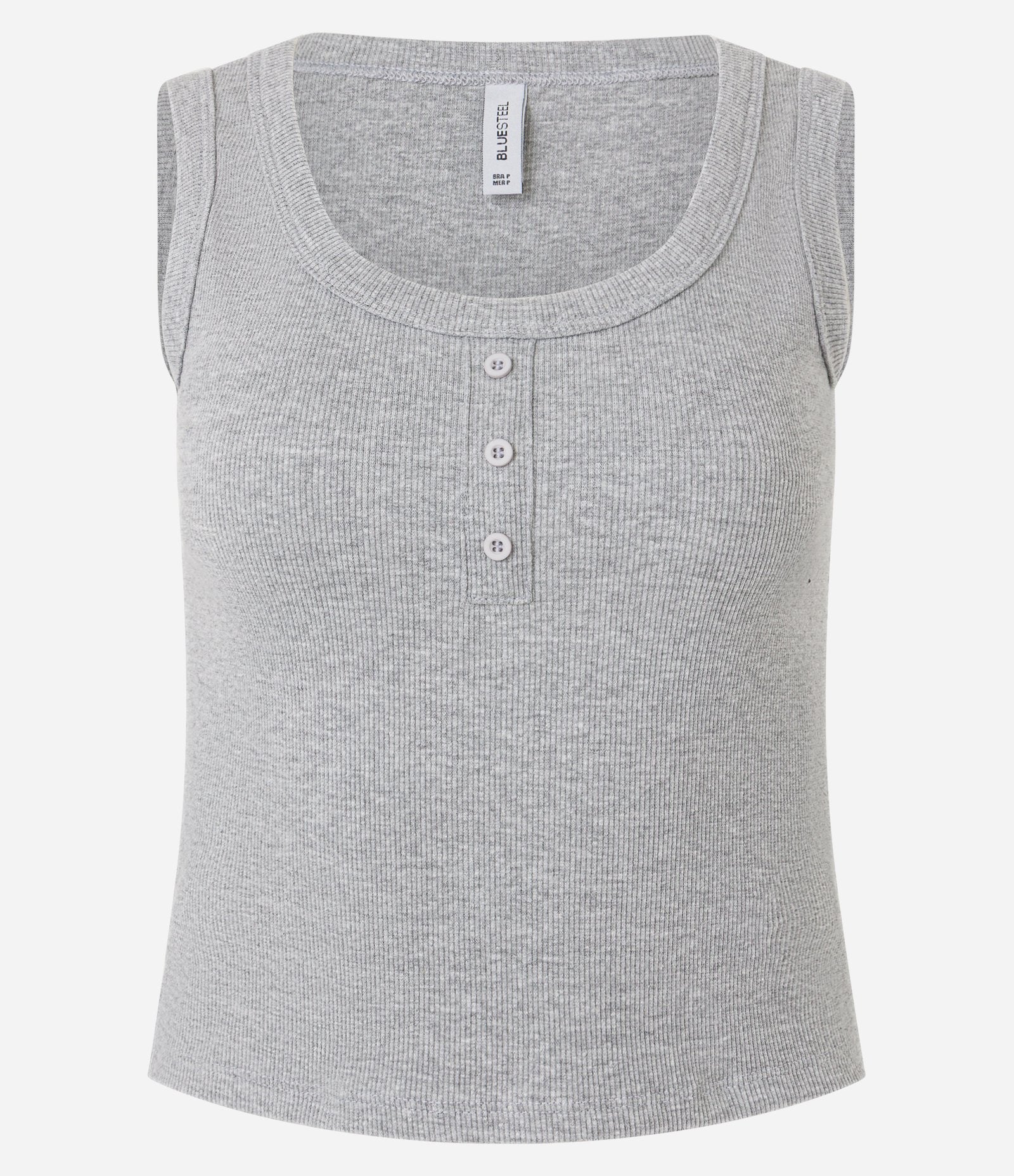 Canotta a coste con piccoli bottoni sul seno in grigio erica