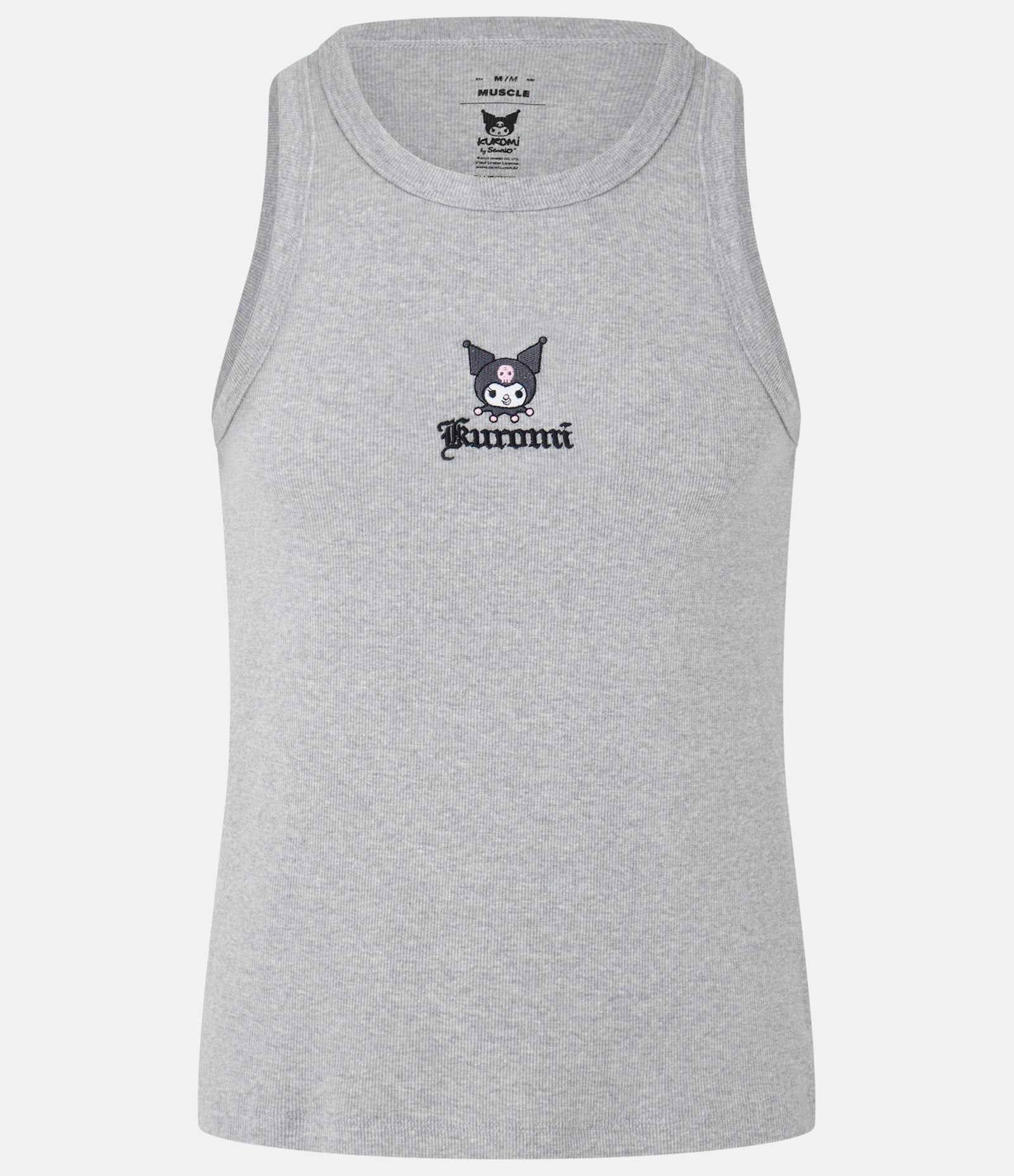 Canotta muscolare a coste grigia Hello Kitty con effetto marmorizzato