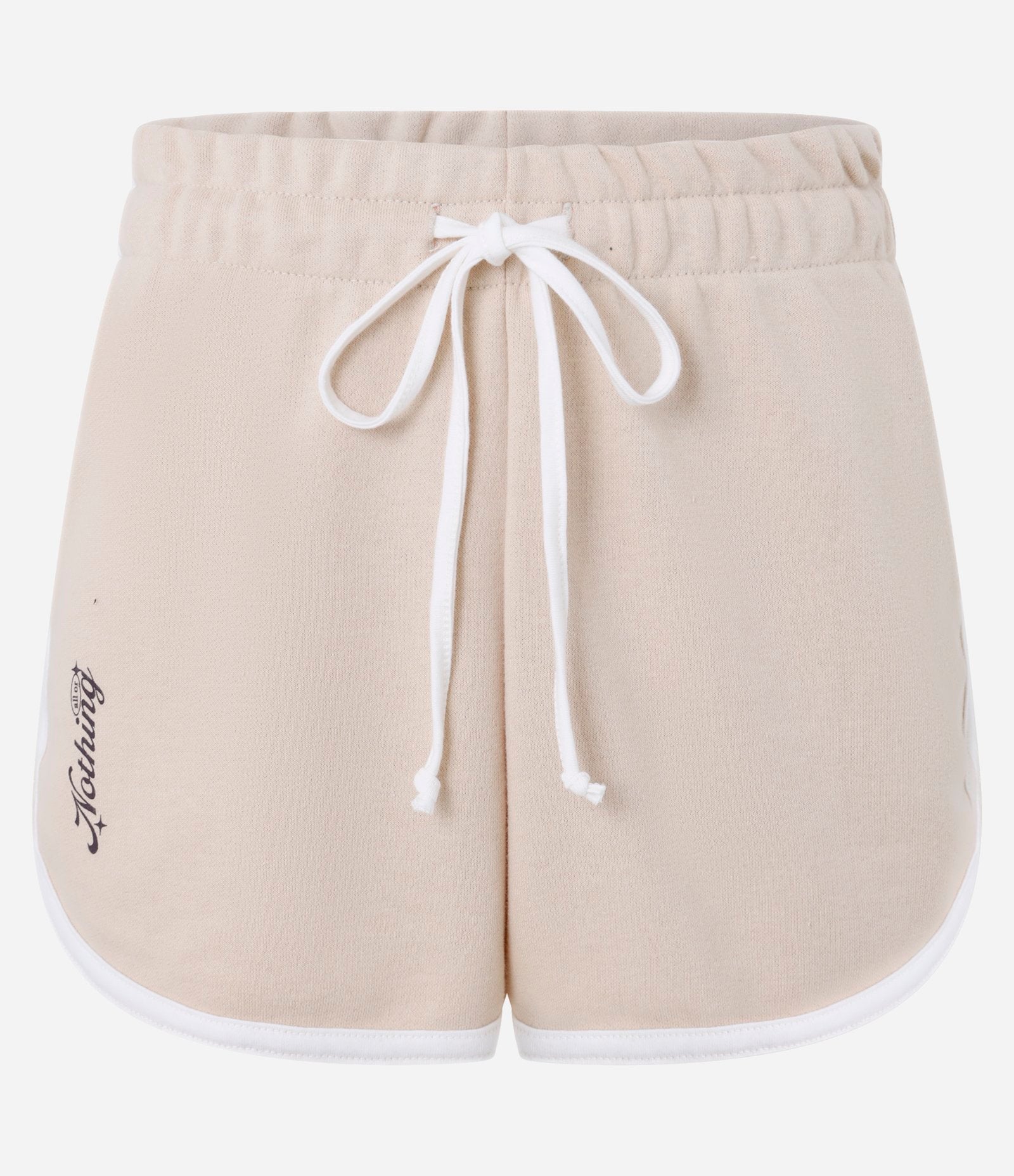 Pantaloncini da bagno beige foderati in pile con stampa "Nothing