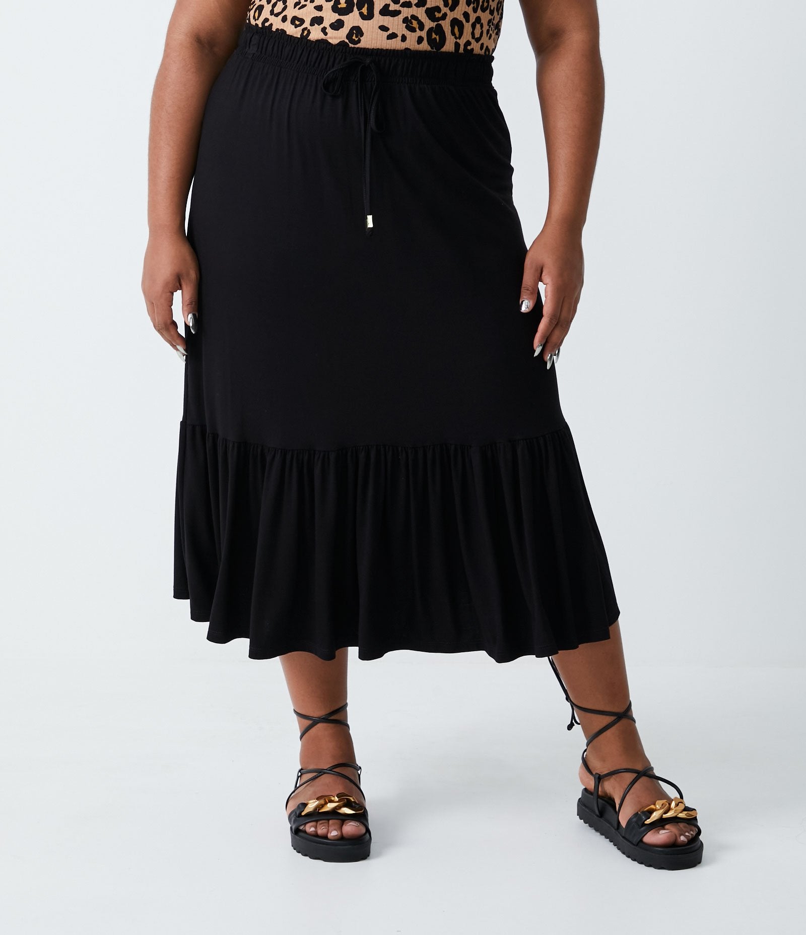 Gonna nera in viscosa con volant - Curve e taglie forti