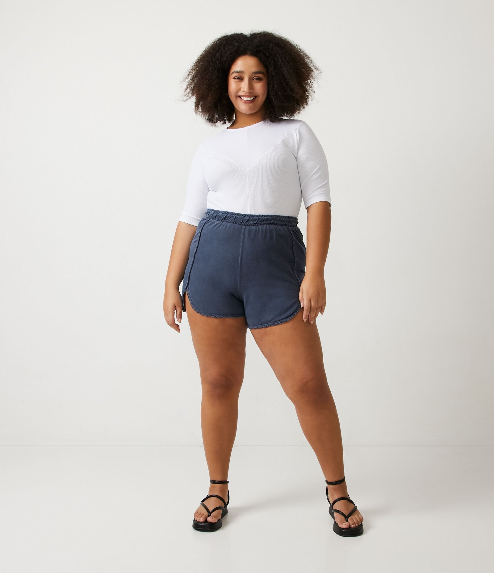 Il runner corto in cotone invecchiato per Curve & Plus Size in blu di Ashua Curve è realizzato per celebrare le curve con stile e sicurezza. Ideale per ogni occasione, questo capo combina perfettamente comfort ed eleganza in un design che non passa inosservato.