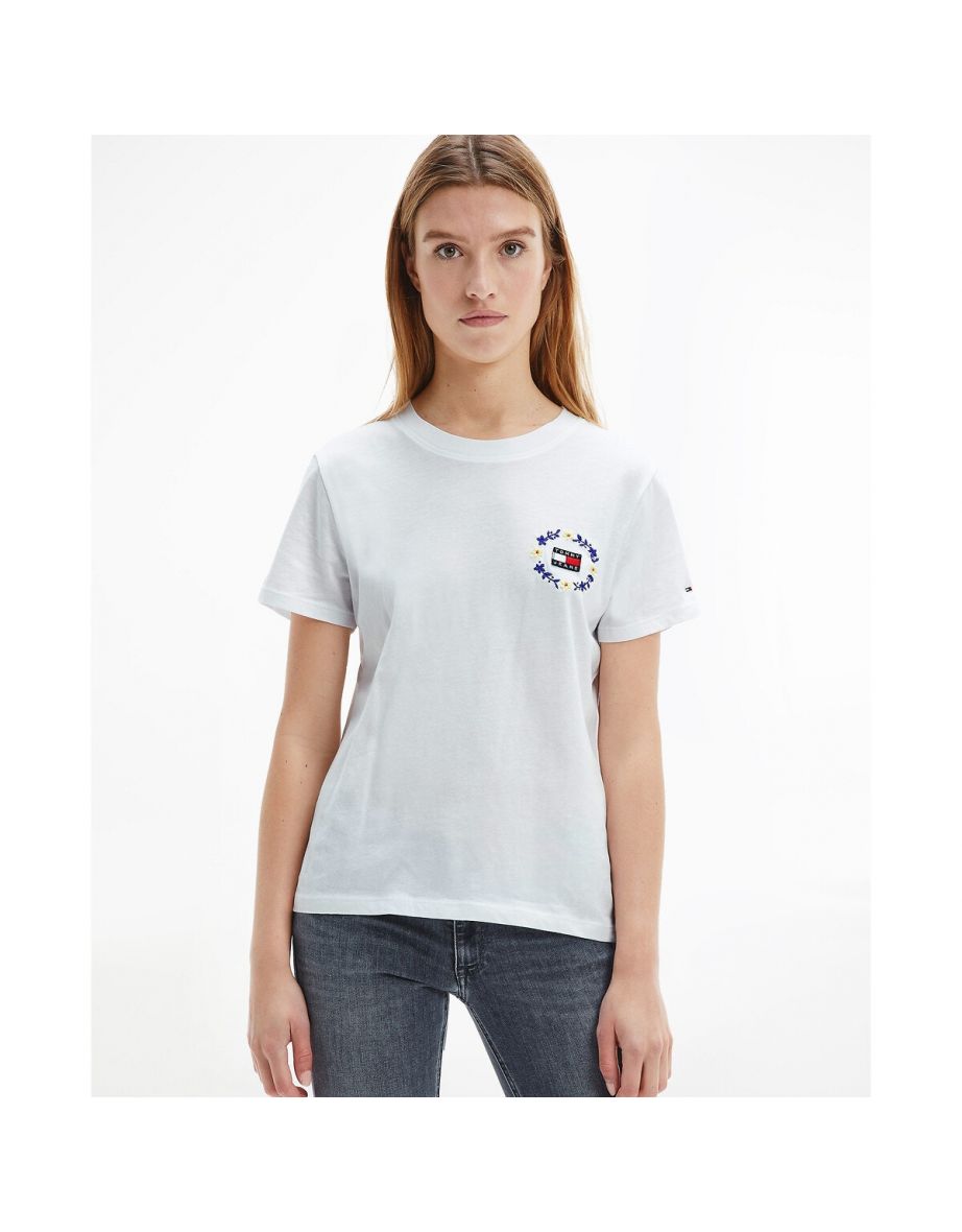 La T-Shirt girocollo a manica corta in cotone organico di Tommy Hilfiger è la scelta ideale per uno stile casual senza sforzo e per il comfort di tutti i giorni.
