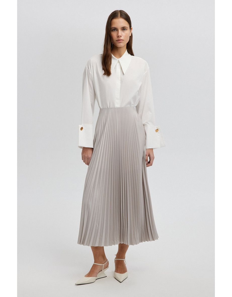 Gonna a pieghe grigia con linea ad A