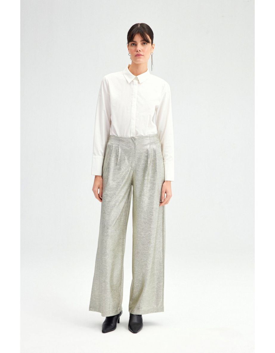 I pantaloni PALAZZO FIT con tessuto lucido di Touché sono perfetti per creare look essenziali ed elevare il tuo stile quotidiano.