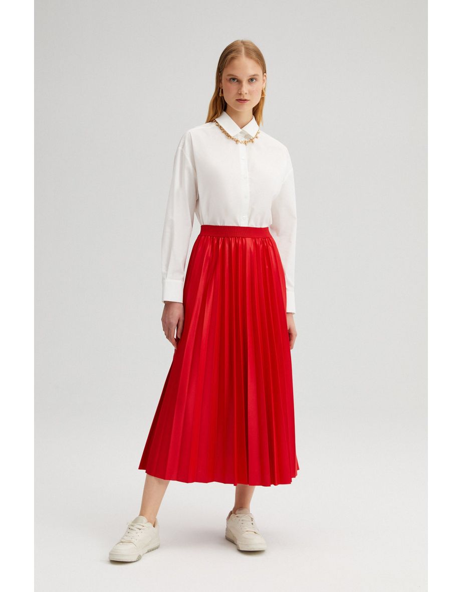 Gonna midaxi a pieghe rossa a colonna