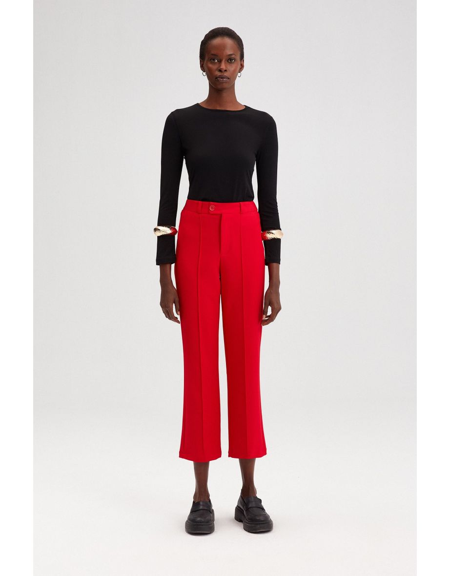I RIBBED FLARE CREPE TROUSERS di Touché sono perfetti per creare look essenziali ed elevare senza sforzo il tuo stile quotidiano.