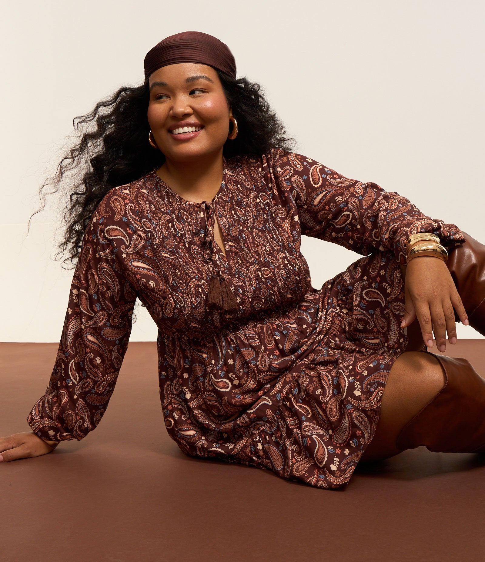 L'Ashua Curve Short Paisley Chalis Dress with Smocking in Curve & Plus Size Brown è realizzato per celebrare le curve con stile e sicurezza. Ideale per ogni occasione, questo vestito combina comfort ed eleganza in un design lusinghiero che esalta la tua silhouette.