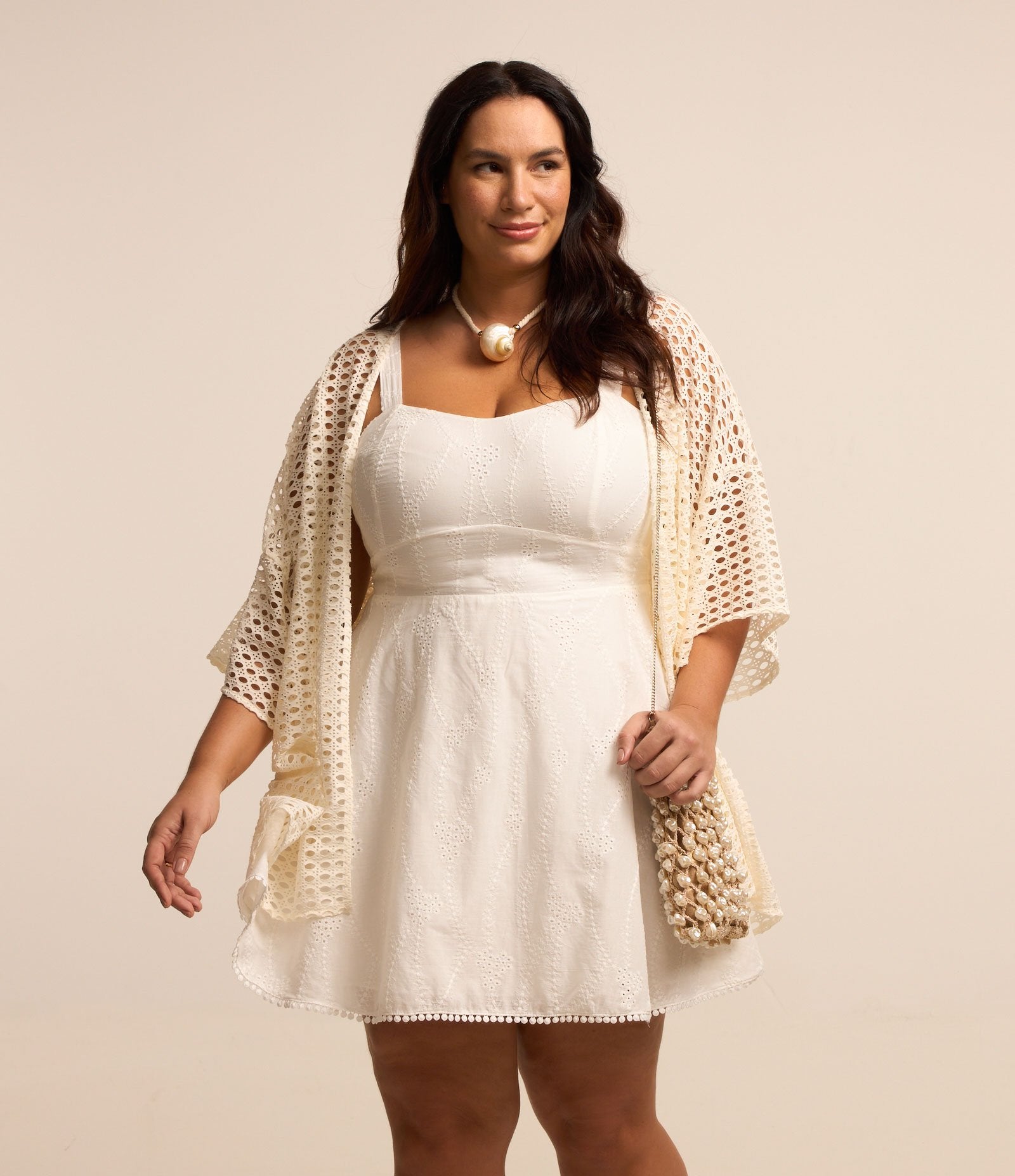 Il vestito corto senza maniche Laise bianco di Ashua Curve è realizzato per celebrare le curve con stile e sicurezza. Ideale per ogni occasione, questo capo combina perfettamente comfort ed eleganza in un design lusinghiero.