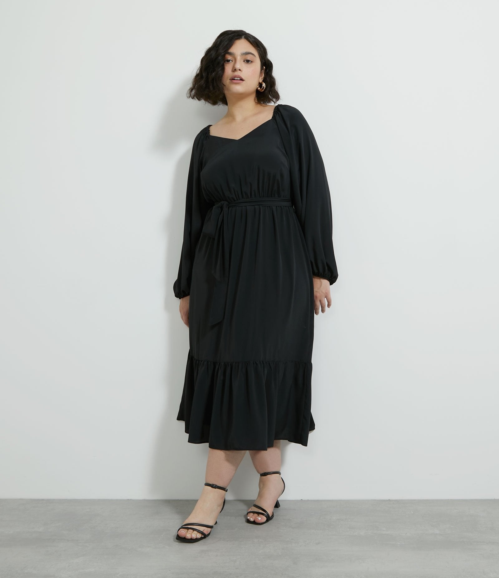 Il vestito midi in crepe con cintura e orlo increspato in Curve & Plus Size Black di Ashua Curve è realizzato per abbracciare e valorizzare le tue curve con stile e sicurezza. Ideale per ogni occasione, questo abito combina perfettamente comfort ed eleganza in una silhouette perfetta.