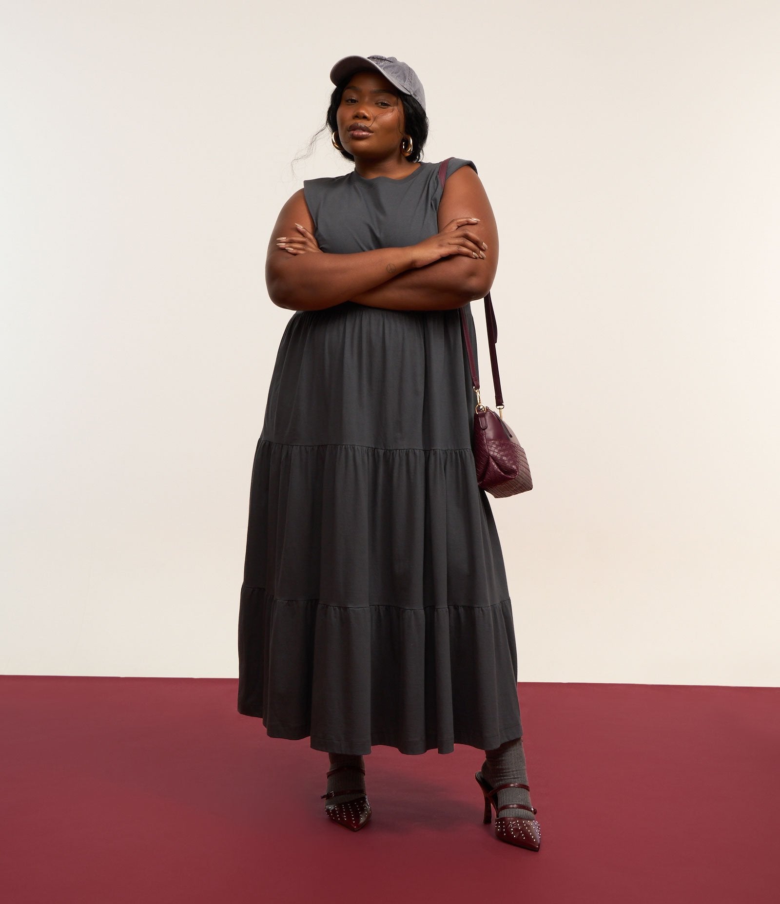 Il Midi Muscle Tee Dress grigio scuro in cotone di Ashua Curve è realizzato per celebrare le curve con stile e sicurezza. Ideale per ogni occasione, questo capo combina perfettamente comfort ed eleganza in un design lusinghiero.