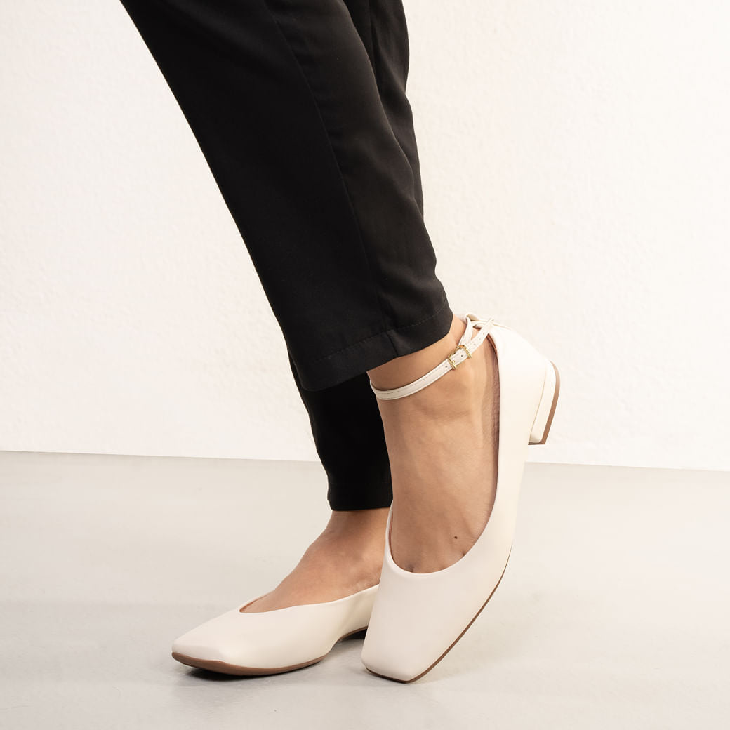 Ballerine bianche con punta quadrata da donna con fibbia di Vizzano