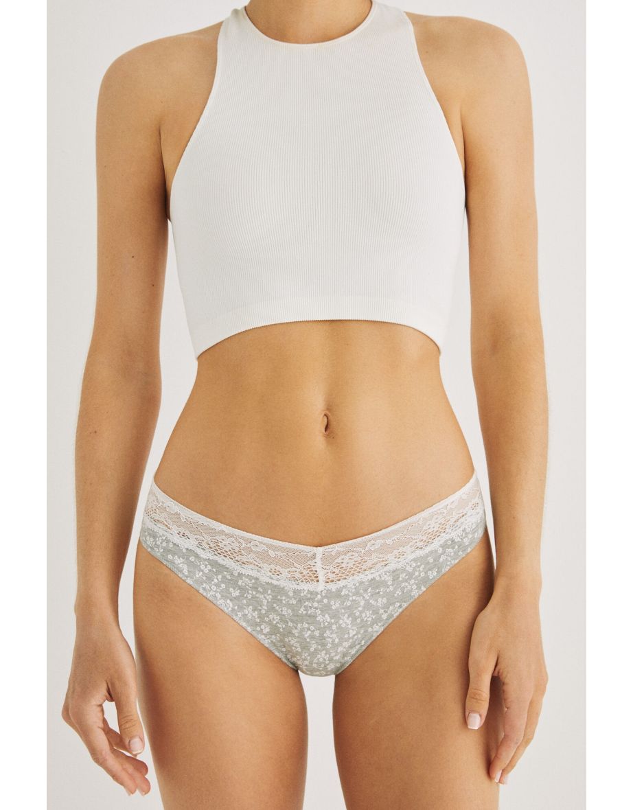 Il Panty in cotone e pizzo stampato grigio di Women'Secret è la scelta ideale per un look essenziale e un comfort quotidiano.