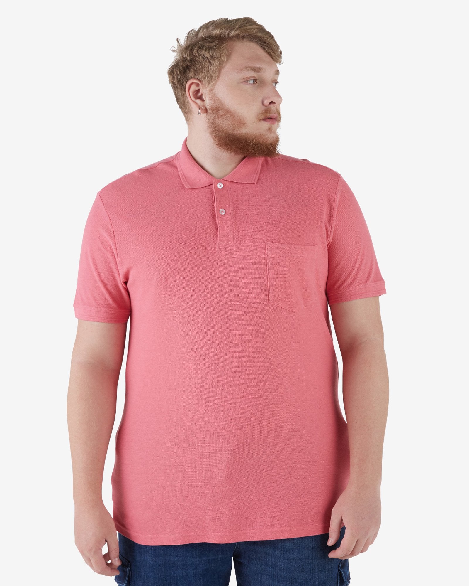 Men's Plus Size Legacy Piquet Polo Shirt in Pink | Pool Basics by RCHO PLUS is expertly crafted to exude confidence and comfort. This polo is designed with a contemporary and stylish flair, making it ideal for everyday wear.