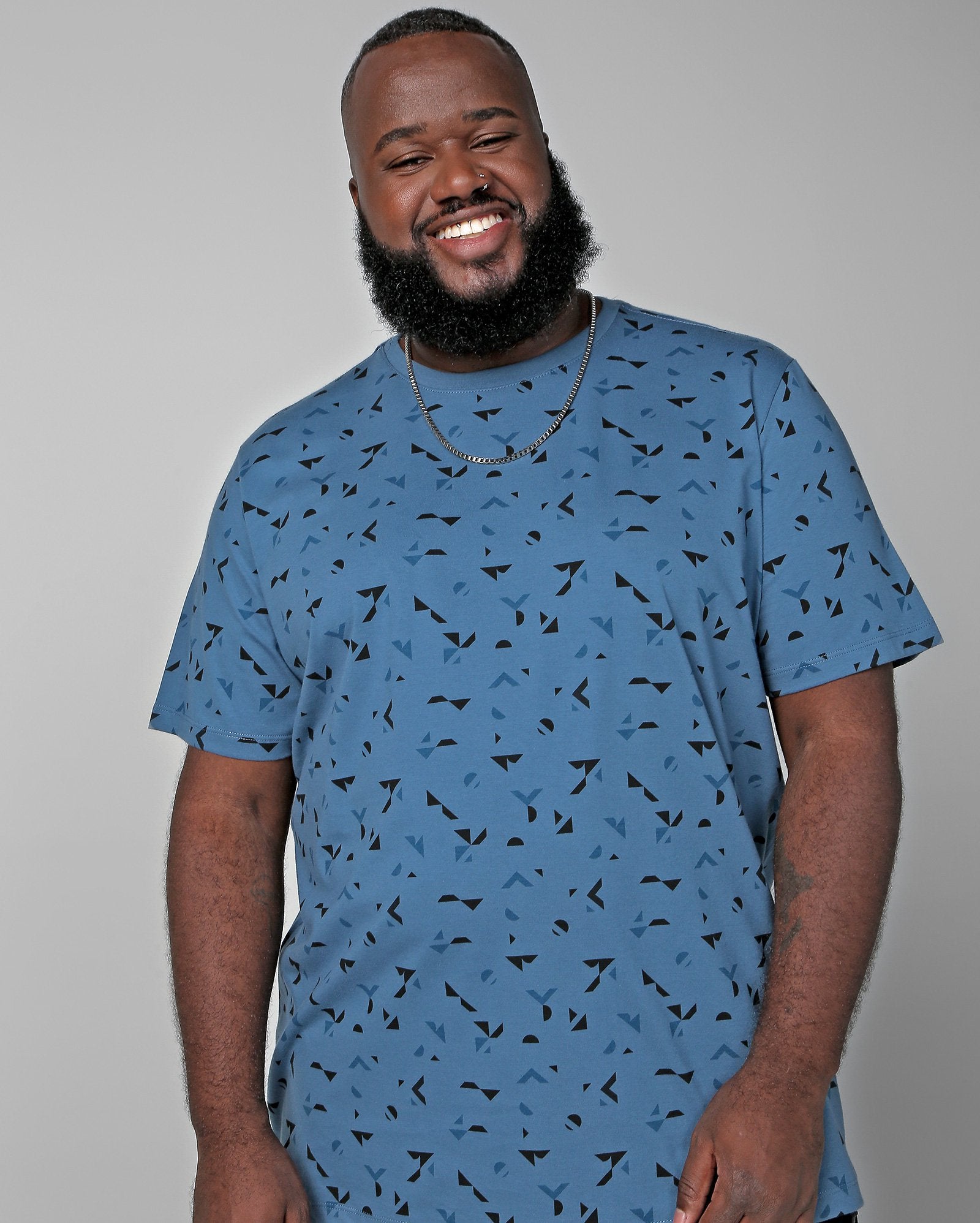 Men's Plus Size Short Sleeve Abstract Blue T-Shirt by Allman for Riachuelo