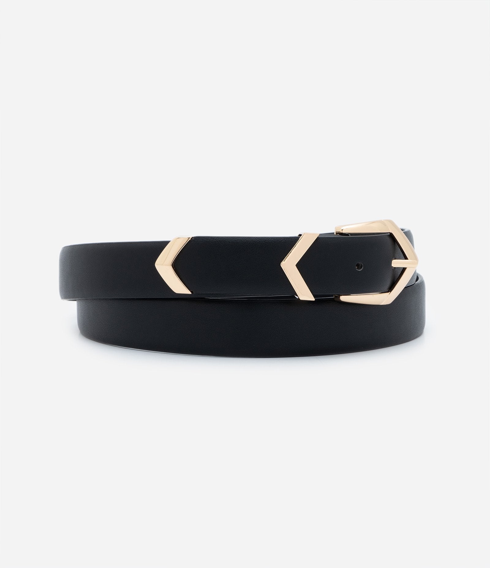 Medium Belt in Synthetic Material with Pentagon Buckle, Curve & Plus Size, Black