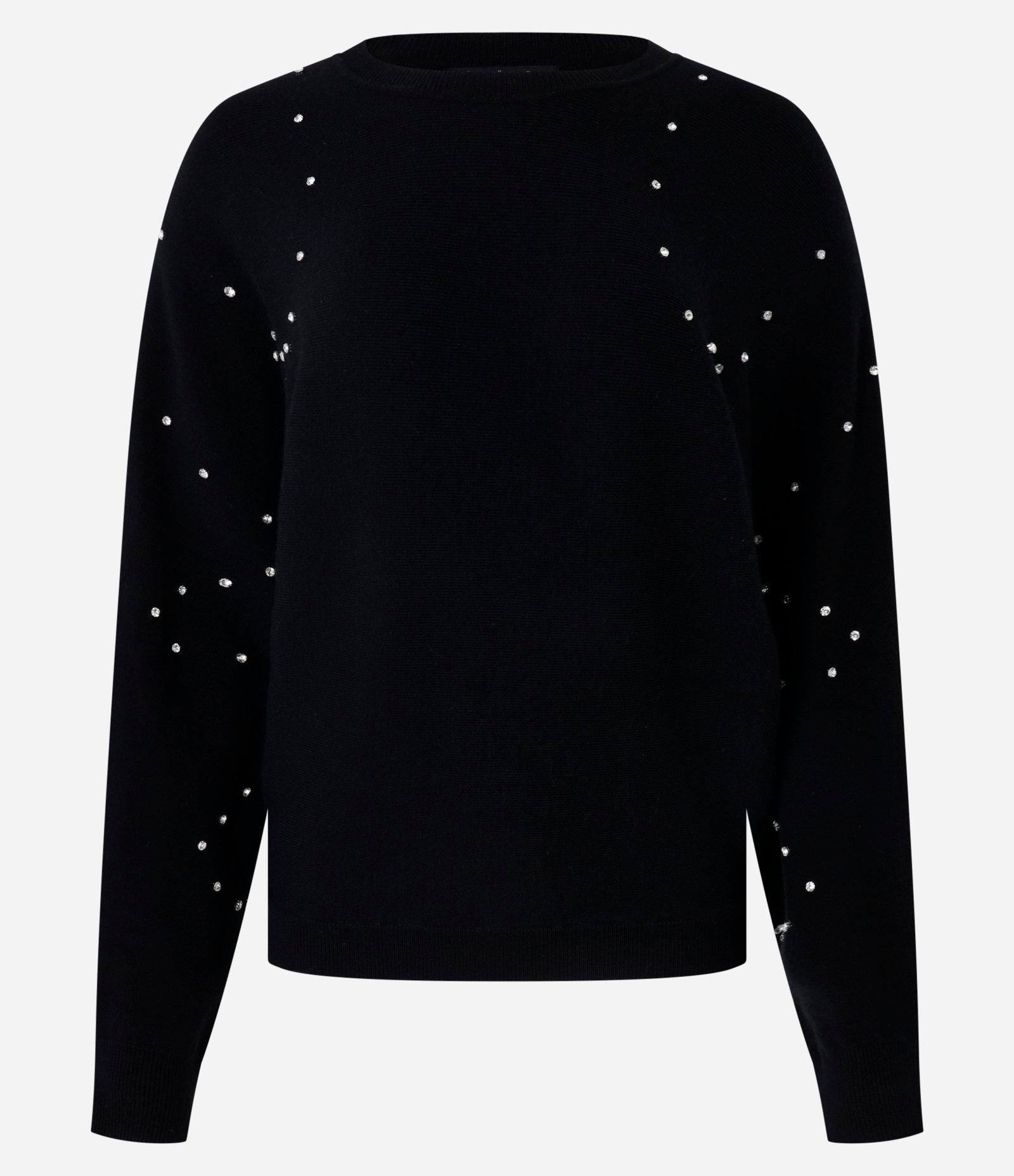 Black Knitted Sweater with Puff Sleeves and Embellishments