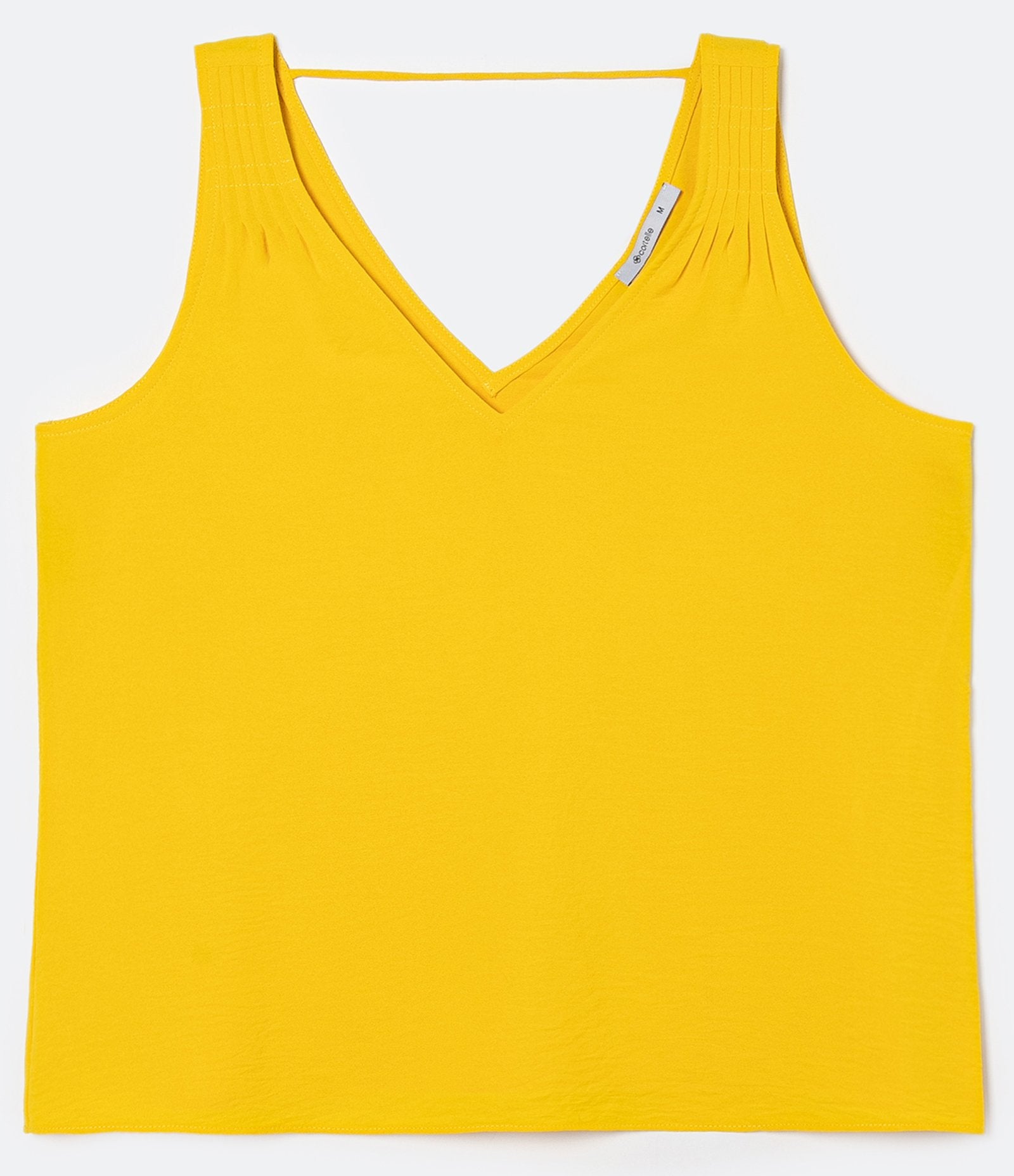 Yellow V-Neck Sleeveless Top with Shoulder Pleats