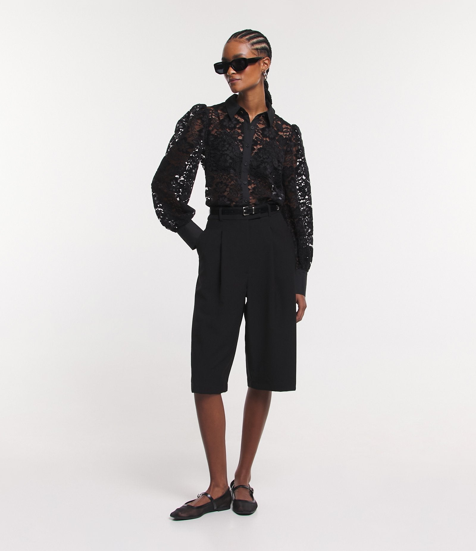 Long Tailored Black Bermuda Shorts with Pleats and Pockets by Cortelle – Experience the perfect blend of comfort, quality, and style in every piece.