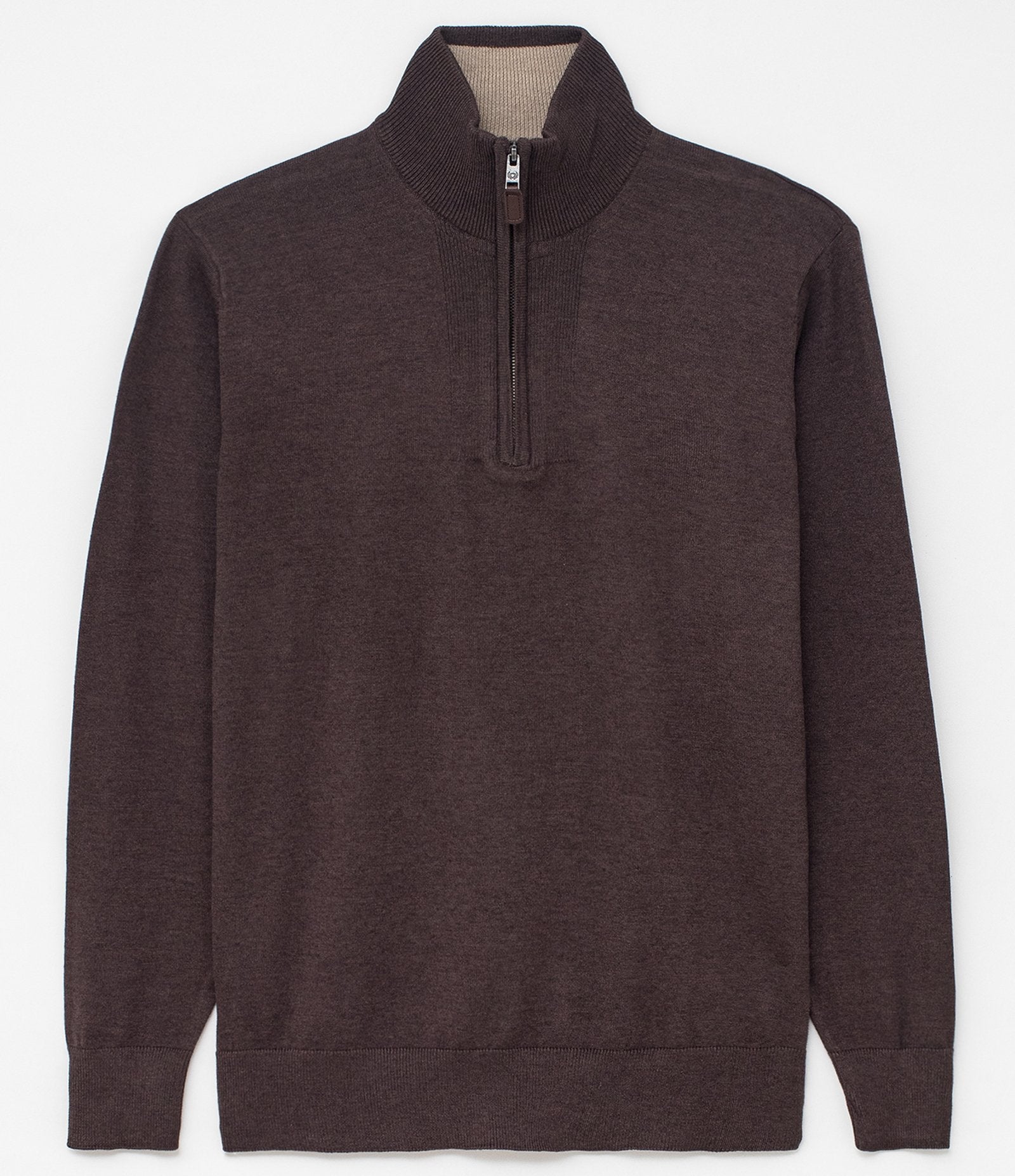 Brown Plain Sweater with Zipper Collar