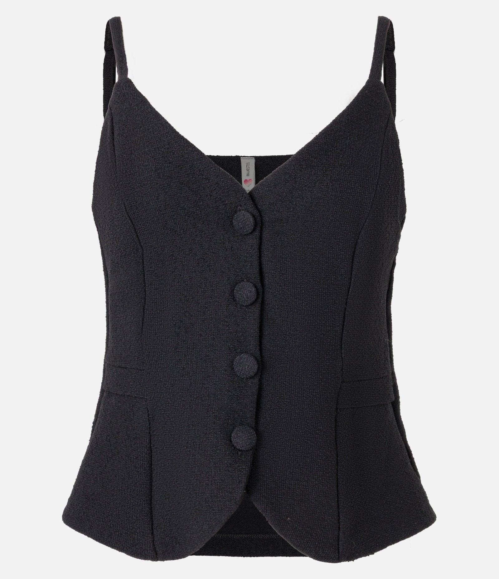 Tweed Strap Top with Buttons in Black