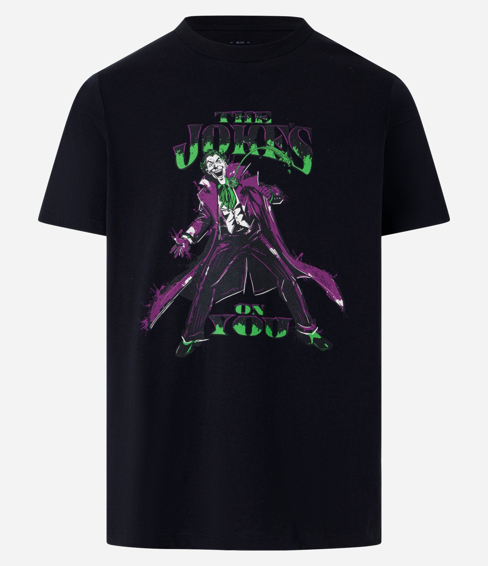 Regular Fit Cotton T-Shirt with The Joker Print in Black