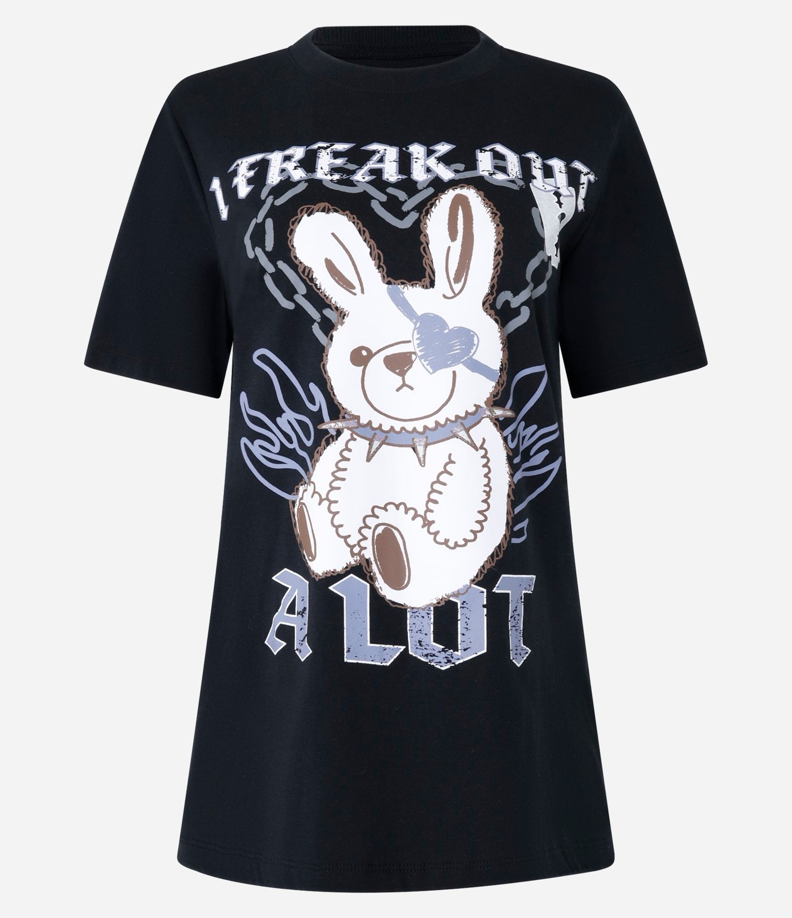Black Freak Out Rabbit Printed Cotton T-Shirt