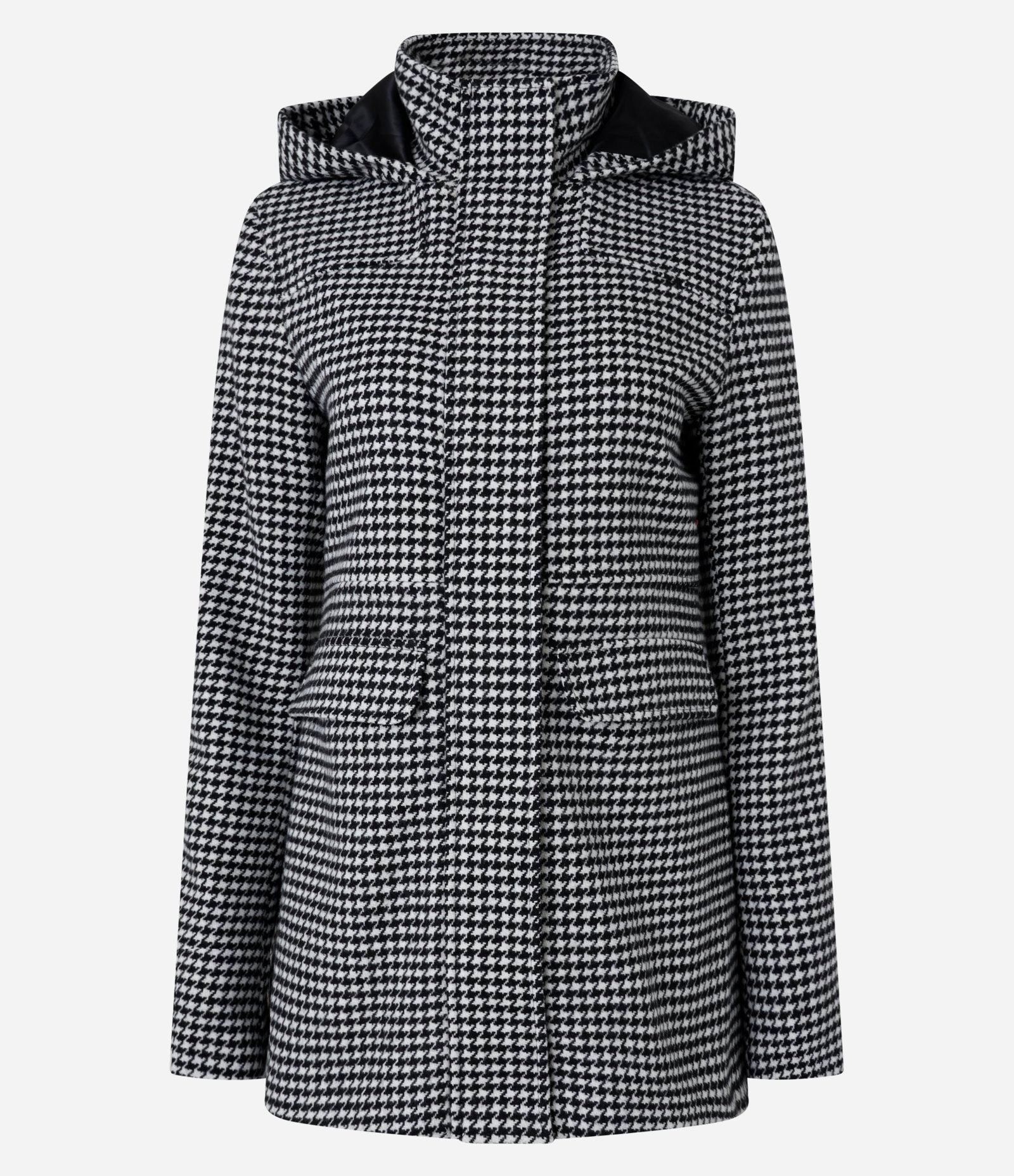 Long Plaid Houndstooth Polivelour Jacket with Black Hood