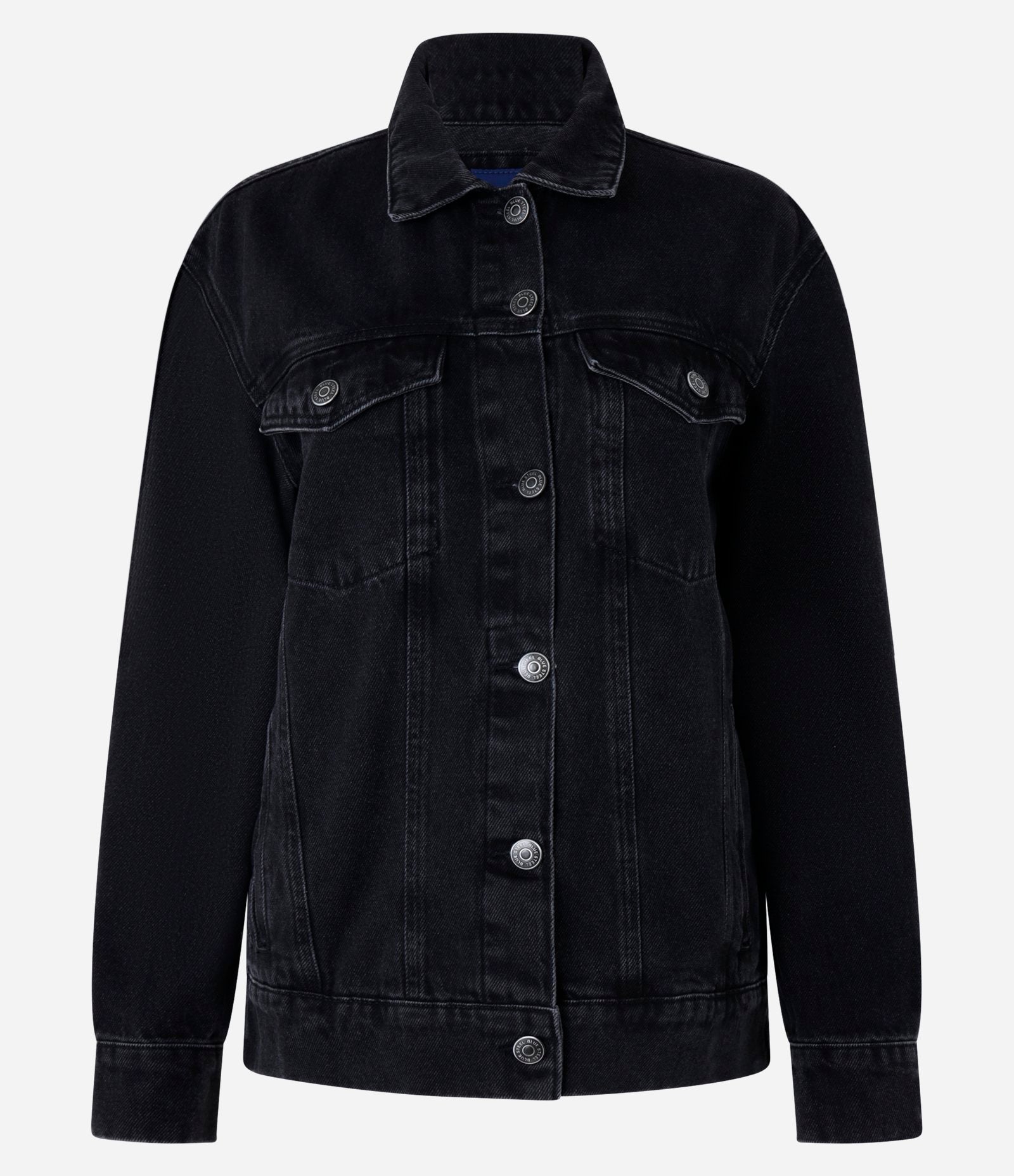 Oversized Black Denim Jacket with Front Pockets