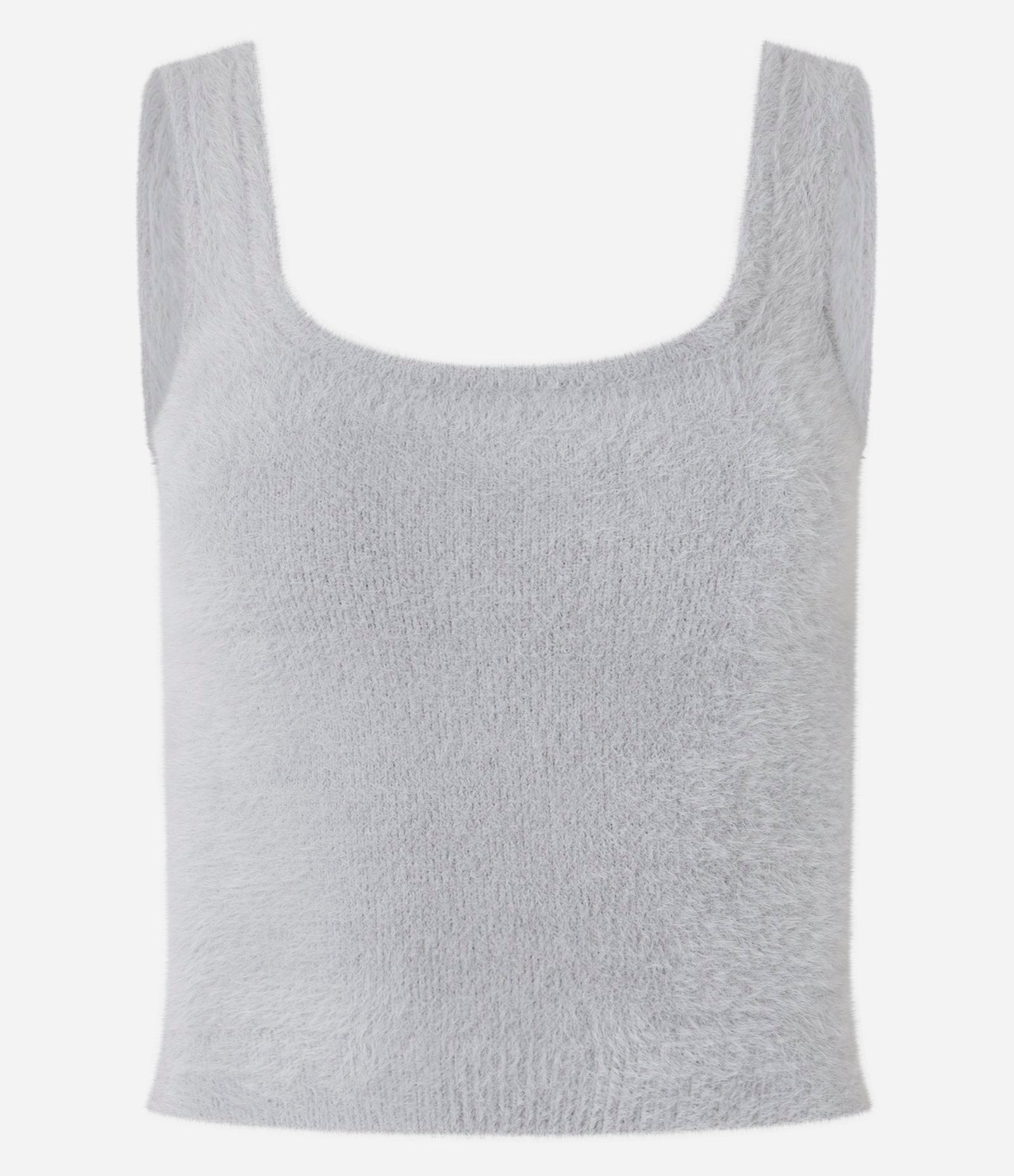 Gray Fuzzy Knit Cropped Tank Top