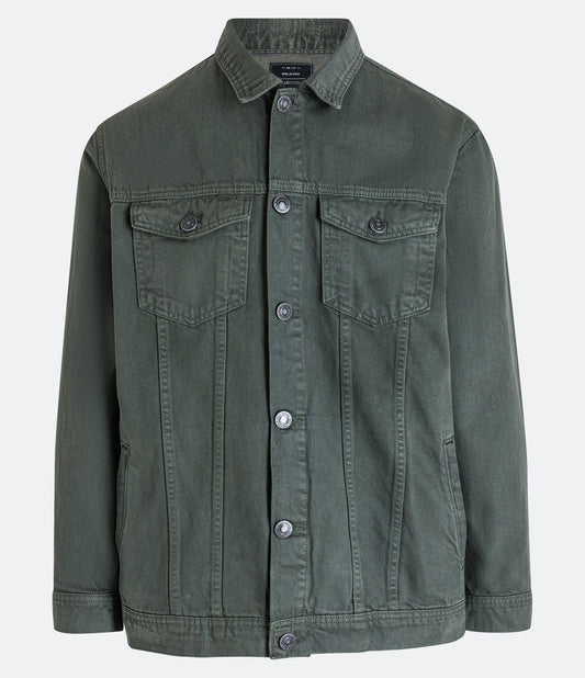 Jaqueta verde de sarja para caminhoneiros com bolsos e painéis frontais