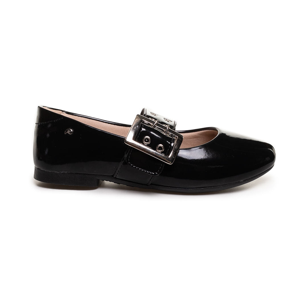 Ballet Flats Infantil em Patente Preto com Fivela da Pampili