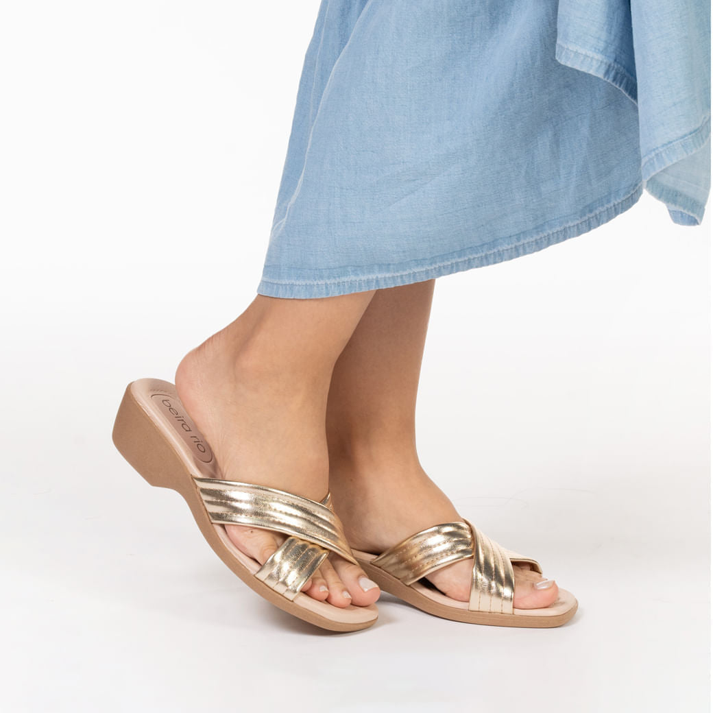 Sandálias femininas de salto médio Beira Rio com tiras douradas