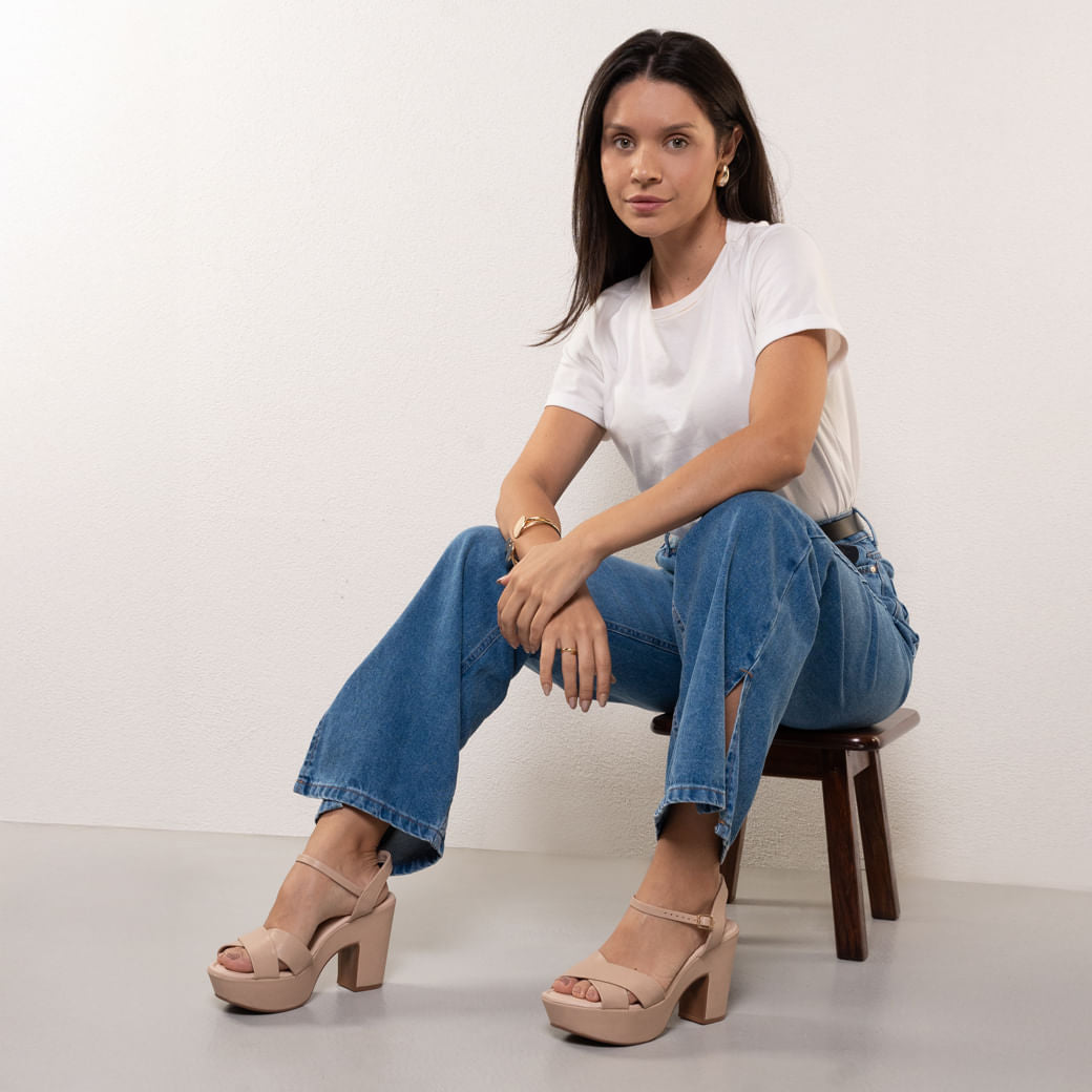 Sandália feminina de plataforma com salto grosso da Bebece em Nude