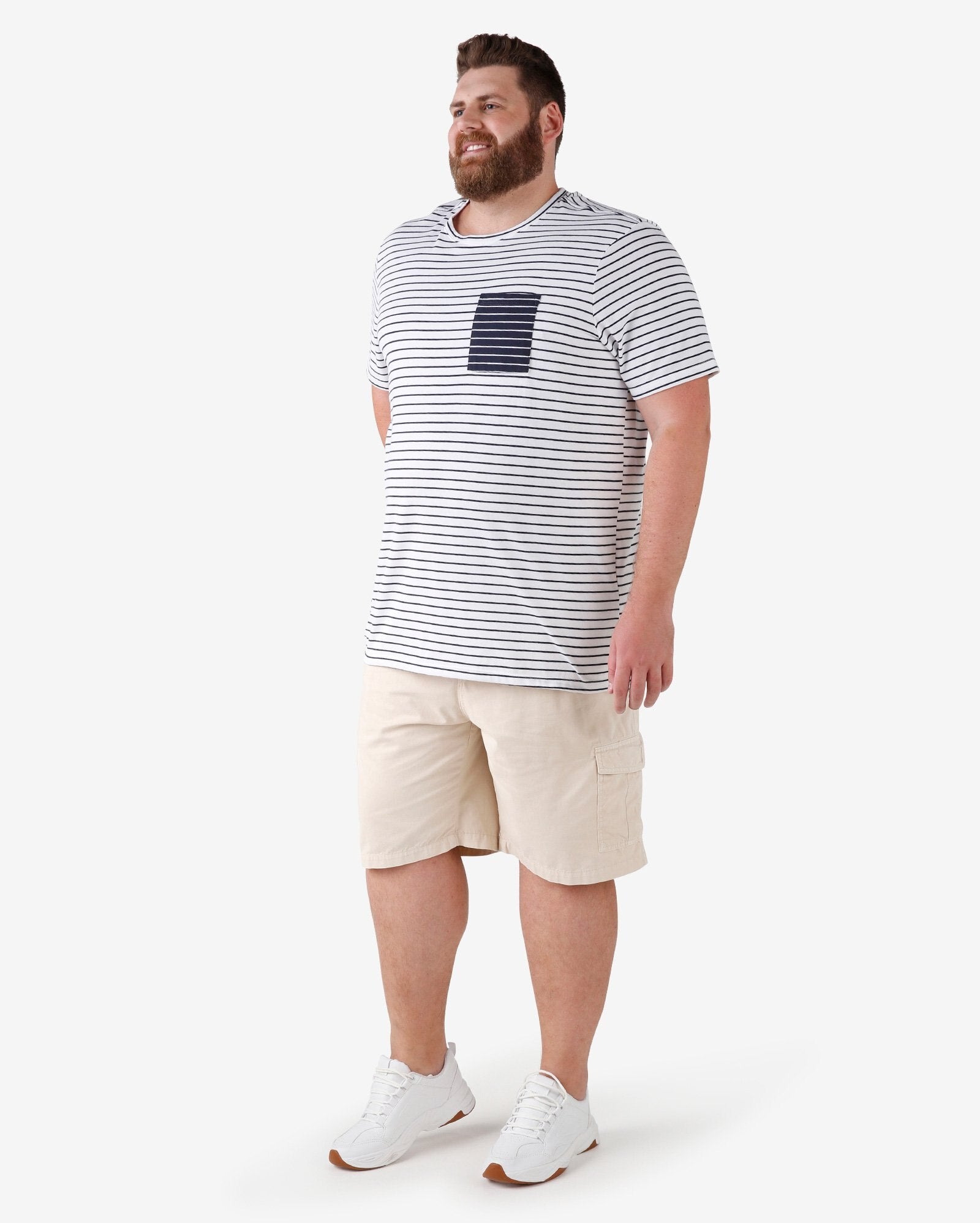 Plus Size Cargo Bermuda Shorts with Elastic Waistband - Khaki