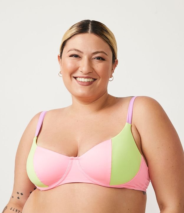 Top de biquíni com armação colorida em tamanhos curvos e grandes - rosa