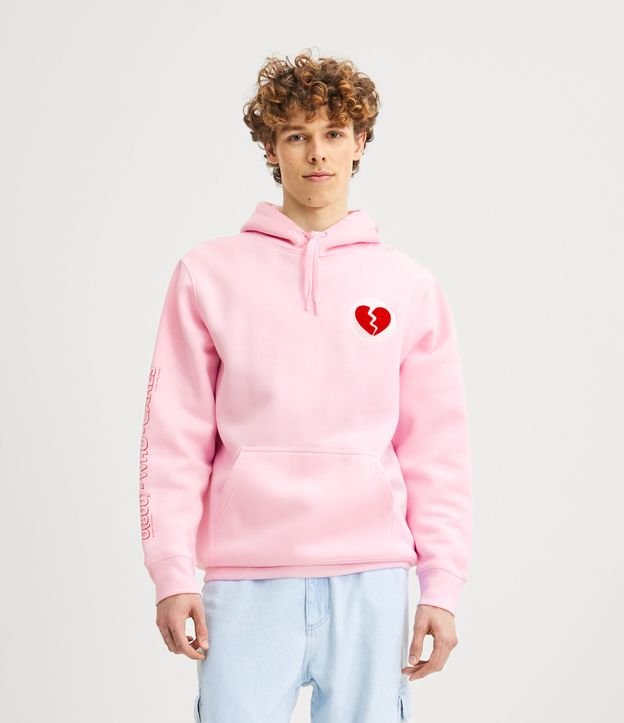 Moletom com capuz de ajuste regular com estampa de coração partido rosa