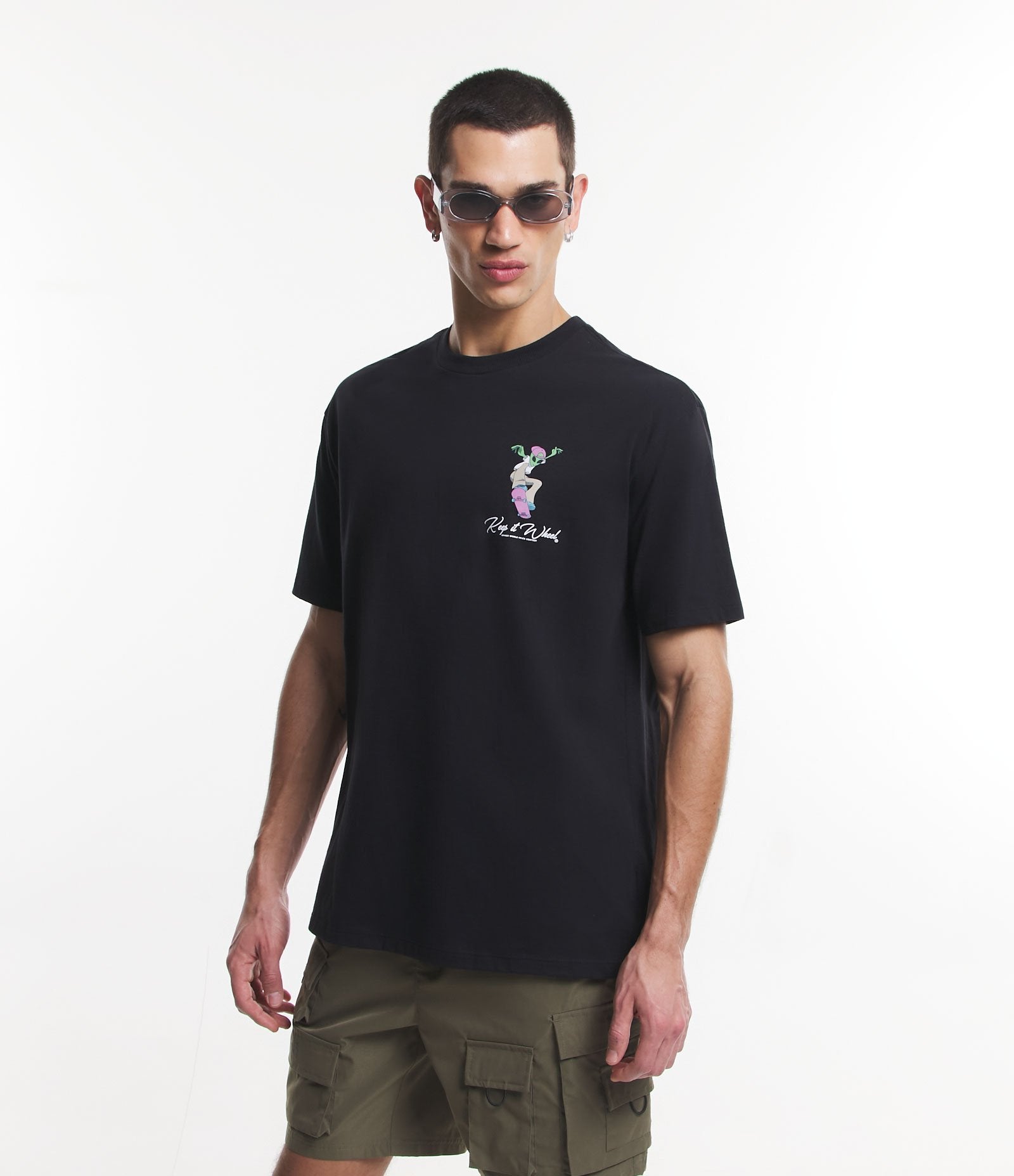 Camiseta de ajuste descontraído em meia malha com estampa de skatista preta