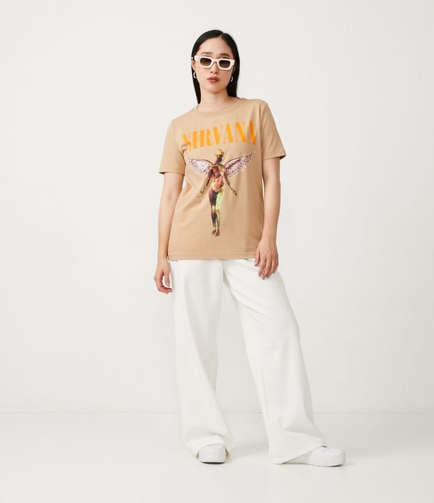 Calças brancas de pernas largas com amarração na cintura