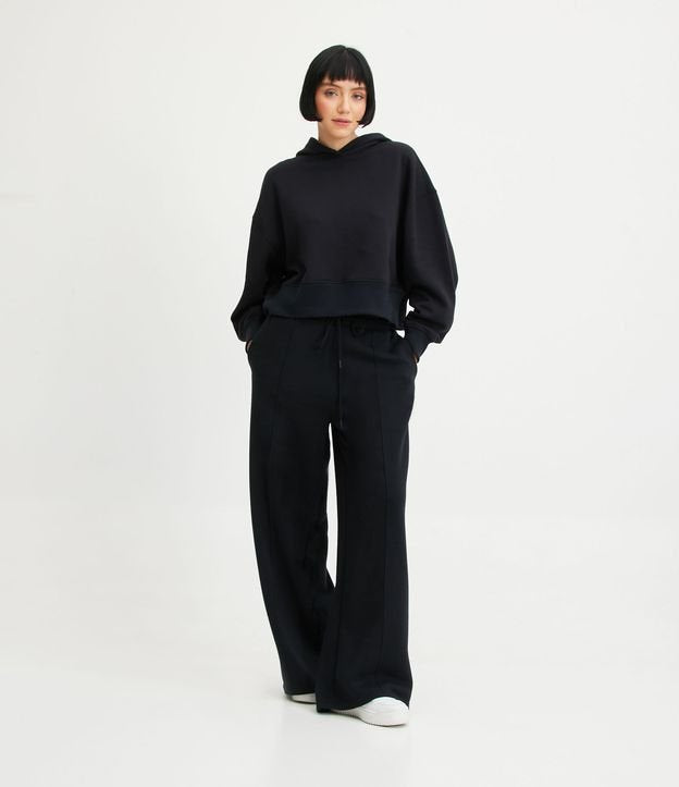 Calça de moletom de perna larga com gravata em preto da Blue Steel - Experimente o conforto incomparável, a qualidade excepcional e o estilo chique em cada peça.