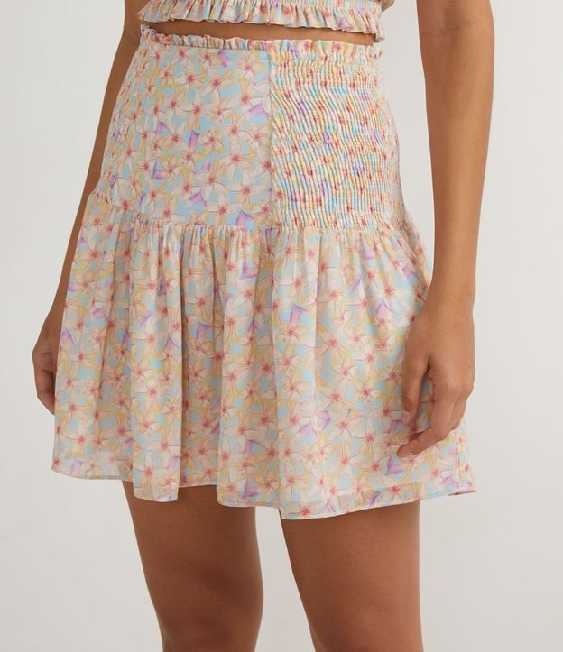Mini-saia Smocked de cintura alta com estampa floral multicolorida da Blue Steel - Experimente o conforto, a qualidade e o estilo em cada peça.